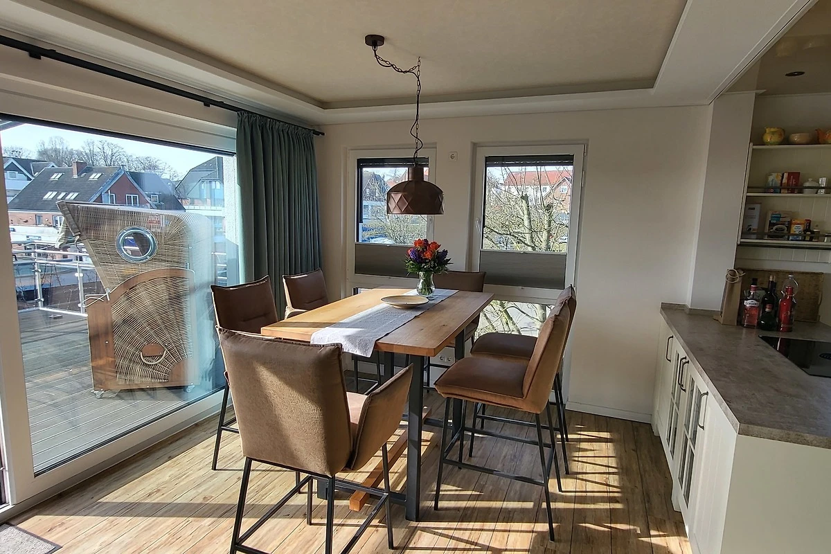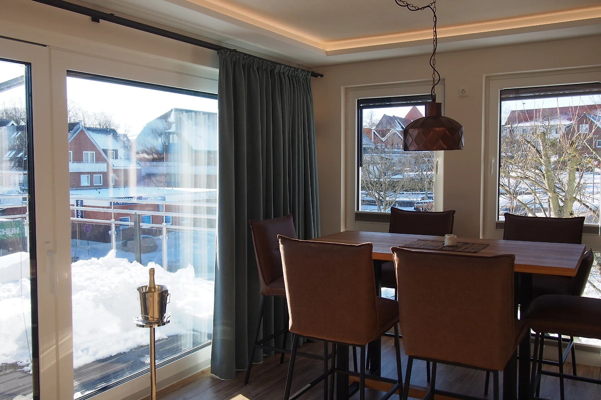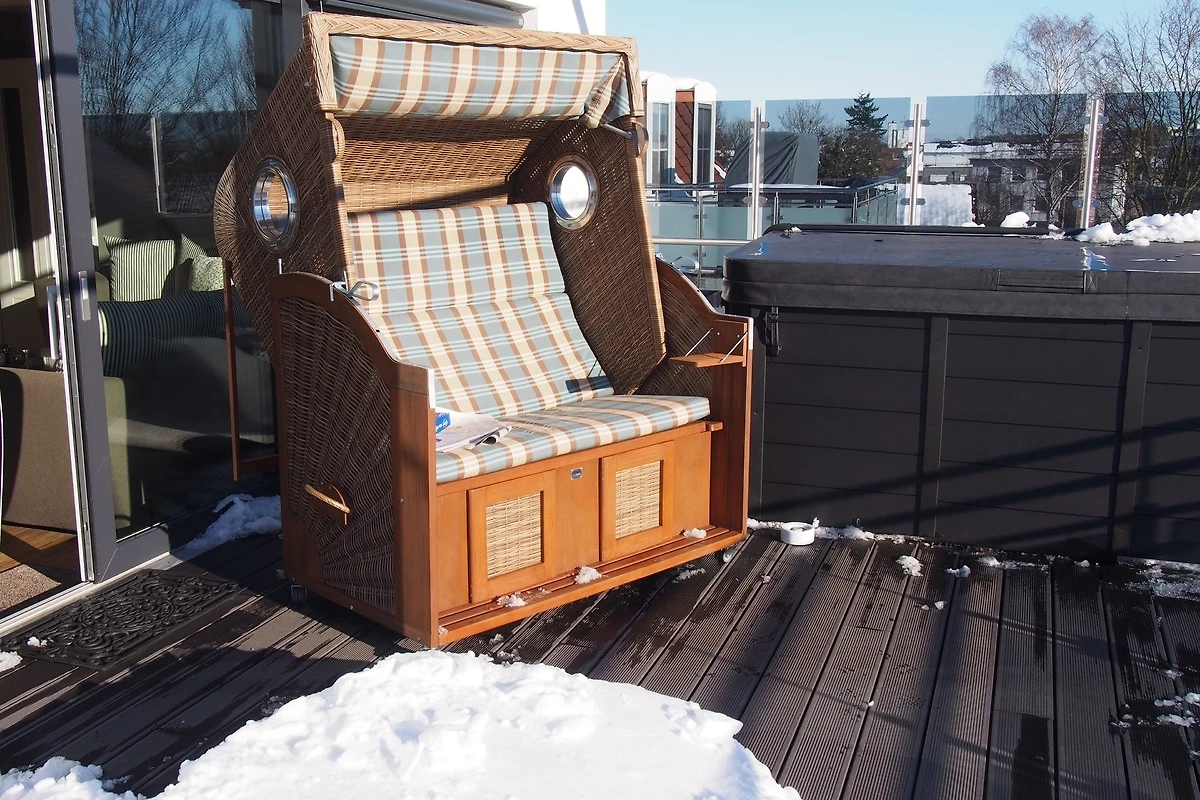 Diese Wohnung ist in Grömitz wohl einmalig und eine Oase zum Wohlfühlen. Eine grosse Terrasse mit Liegestühlen und Strandkorb erlaubt unbeobachtetes Sonnenbaden. Ideal auch für Gäste, die Ihre Zweisamkeit wirklich geniessen möchten. Eine fast 6 Meter lange Fensterfront mit Schiebetürelement zur Südseite und vielen weiteren bodenlangen Fenstern lassen das Gefühl aufkommen, Sie sässen in einem Wintergarten. Auf der wunderbar grossen Terrasse können Sie schon am frühen Morgen in der Sonne frühstücken und am Abend noch in der untergehenden Sonne zu Abend essen.