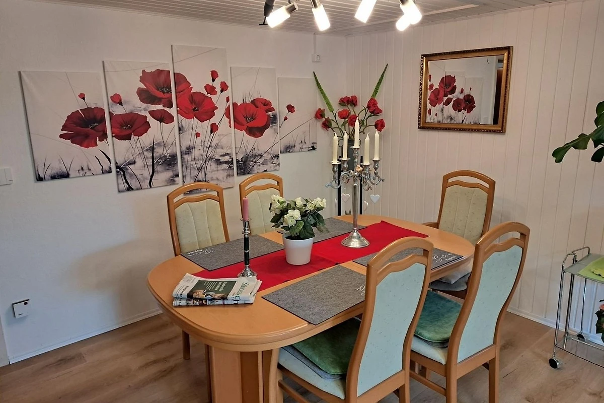 Vermietet wird eine Ferienwohnung in Niedernjesa Gemeinde Friedland südlich von Göttingen in Niedersachsen. Das Haus liegt in einer Sackgasse am Rande des Ortes. Die Wohnung haben wir frisch renoviert und liebevoll gestaltet. Jedes Zimmer hat ein Thema. Das Schlafzimmer Kuba, der Flur Frankreich und das Wohnzimmer Österreich und seine Berge.Als Schlafmöglichkeiten haben wir 1 Doppelbett, 1 Schlafsofa mit einer Liegefläche von 1 m und ein ausklappbares Schrankbett. Falls eine grosse Feier sein sollte, sie 5 Personen sind, dann ist es möglich, auch noch ein weiteres Bett aufzustellen. Das ist aber nur nach Anfrage möglich und nicht standardgemäss vorgesehen.Falls sie einen Kühlschrankauffüllservice brauchen, weil sie nur 1 Nacht da sind oder eine weite Anreise haben, dann ist dieser Service gegen einen Aufpreis möglich.Wir möchten, dass sie sich wohlfühlen.Wenn wir ihr Interesse geweckt haben und sie noch Fragen haben (v.a. wenn sie Haustiere haben), dann kontaktieren sie uns bitte.Mit dem Fahrrad ist man in 20 min im Zentrum und in 30 min in der Uniklinik.Die Busse fahren 1 mal die Stunde, in den Stosszeiten auch 2 mal.Mit dem Auto braucht man 5-7 min um in jeder Richtung einkaufen gehen zu können und um auch im Zentrum zu sein.Bis zur Autobahn A7 und A 38 fährt man in 7 min.Gleich in der Nähe ist ein Stausee zum Baden. Hier kann man mit dem Auto in 3 min sein, zu Fuss in 15 min.Sollten Sie vorab Fragen haben, können Sie mir gern eine Mail an lianehenke29(at)gmail.com senden.Freizeitvorschläge:Rosengarten in ReinhausenForum Wissen in GöttingenStadtführungen in Deutsch und EnglischWaldspaziergänge am Kehr in Göttingender Seeburger Seeder SollingBadeparadies EiswieseBowlingmöglichkeit in Göttingen und HeiligenstadtVitalpark EichsfeldthermeHerkules in KasselSchmetterlingspark in UslarP.S. Museum in EinbeckTretbootfahren auf dem KiessseeZiegentrekking in WitzenhausenGhostmobil vom Escape Room - eine Tour duch Göttingen (die Stadt kennenlernen mal anders)