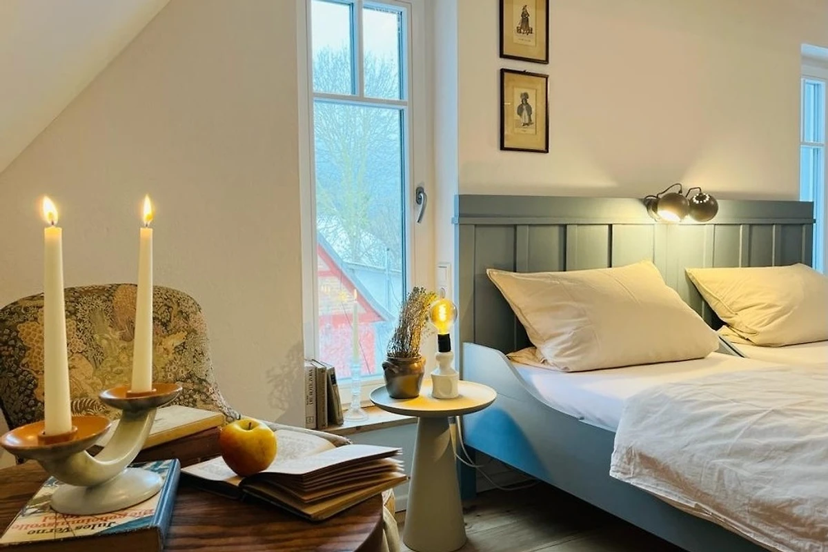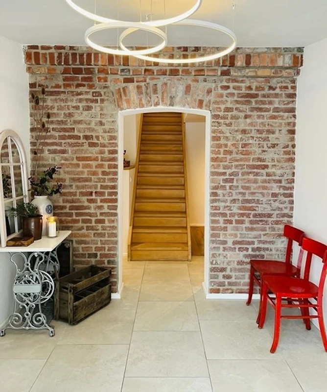 Was Jahre später einmal Dorfschule mit einem Klassenraum und Viehstall war, ist heute euer schönes Feriendomizil "Slichtemolen". Oma Renate und Opa Erich haben hier über 40 Jahre gewohnt, bis sie das rüstige Rentenalter in die Stadt zog. Wir haben Haus und Hof als Enkel und Schwiegerenkel im Sommer 2021 übernommen, um an deren tolle Geschichte gegenwertig anzuknüpfen. Uns ist es ein Bedürfnis dieses familiäre Kleinod und Stückchen Heimat zu erhalten und in der Familie zu belassen. Natürlich gehört es auch irgendwann dazu ein Haus von 1952 komplett auf den Kopf zu stellen, neu zu strukturieren und zu modernisieren, was wir bis Frühjahr 2023 taten. Auch wenn die räumliche Aufteilung nun eine andere ist als früher und nahezu nur noch die Aussen- und tragenden Wände das ehemalige Gerüst darstellen, haben wir versucht den Charme der Vergangenheit zu erhalten. So haben wir teilweise Decken und Wände belassen, den ehemaligen Klassenzimmerboden als Wandvertäfelung verbaut und alte Holzdielen als Fensterbänke und Ablageflächen zweckentfremdet. Uns wird immer eine gemeinsame Liebe und Geschichte mit dem Haus verbinden und wir sind stolz dieses persönliche Gut weiterzuführen.