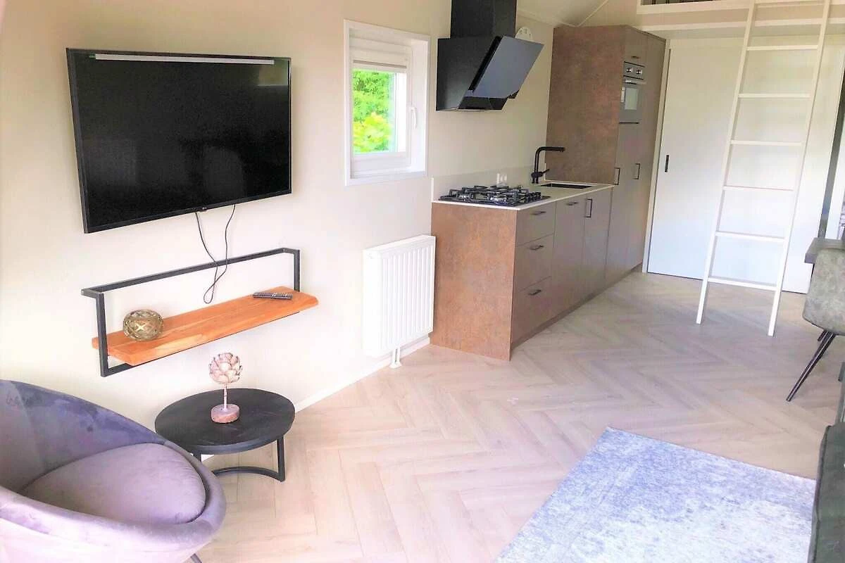Dieses schöne Chalet wurde nach dem Tiny-House-Prinzip entworfen und gebaut, aber etwas geräumiger für mehr Komfort. Ihnen stehen alle modernen Annehmlichkeiten zur Verfügung, wie eine voll ausgestattete Küche mit Geschirrspüler, ein Wohnzimmer mit bequemen Möbeln und ein schönes Badezimmer.