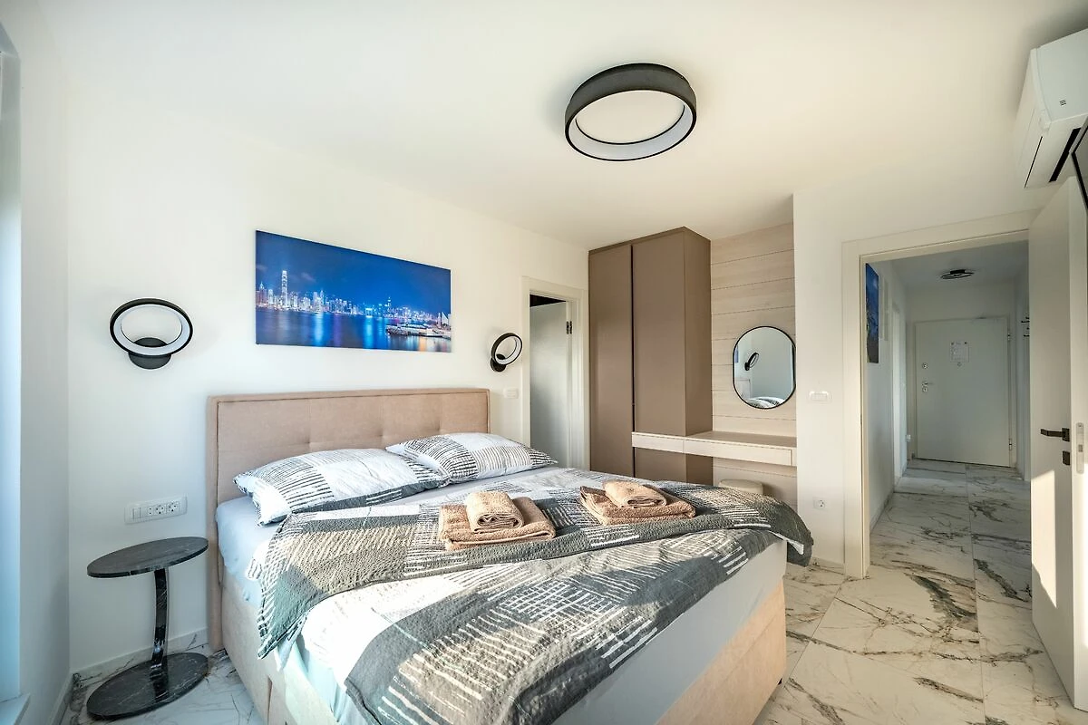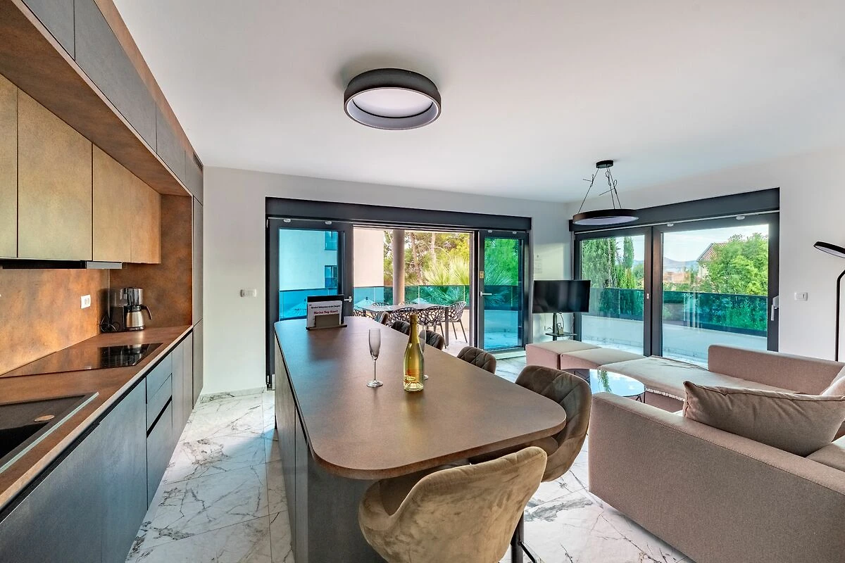 Zusätzlich können Sie wenige Fußminuten entfernt in landestypischen Lokalen (Konobas) kroatische Spezialitäten, wie Fisch oder Muscheln, frisch gefangen aus dem Meer genießen. Darüber hinaus können Sie bei den Bars oder Bäckereien an der Promenade einen Kaffee genießen und die Seele baumeln lassen. Wenn Sie sich einmal selber etwas in Ihrer Küche zubereiten wollen, gibt es etliche Supermärkte nur wenige Fußminuten entfernt, in welchen Sie bequem einkaufen können.