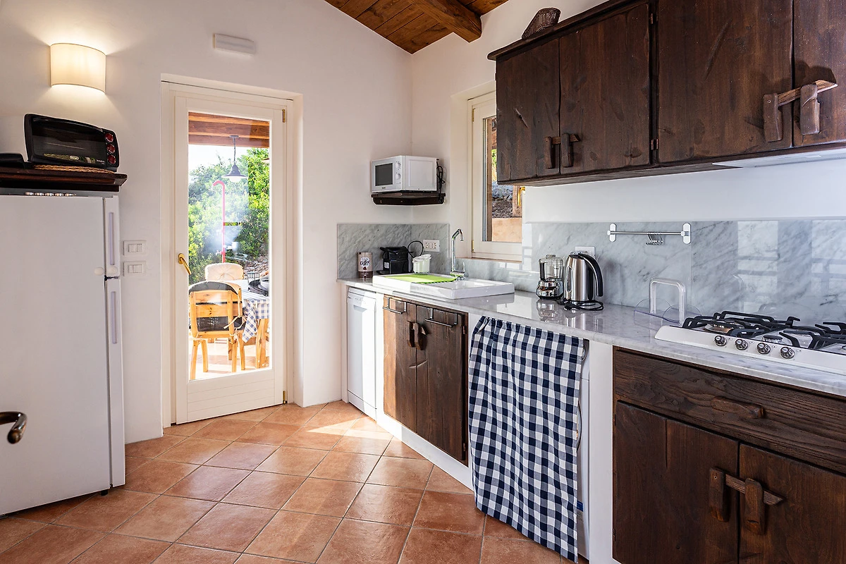 Furnishing of Casetta Lupo includes mosquito nets in the bedroom, washing machine, WiFi and air conditioning, outdoor furniture and grill.