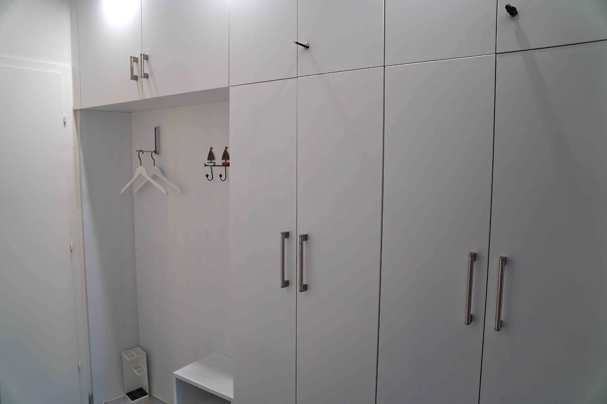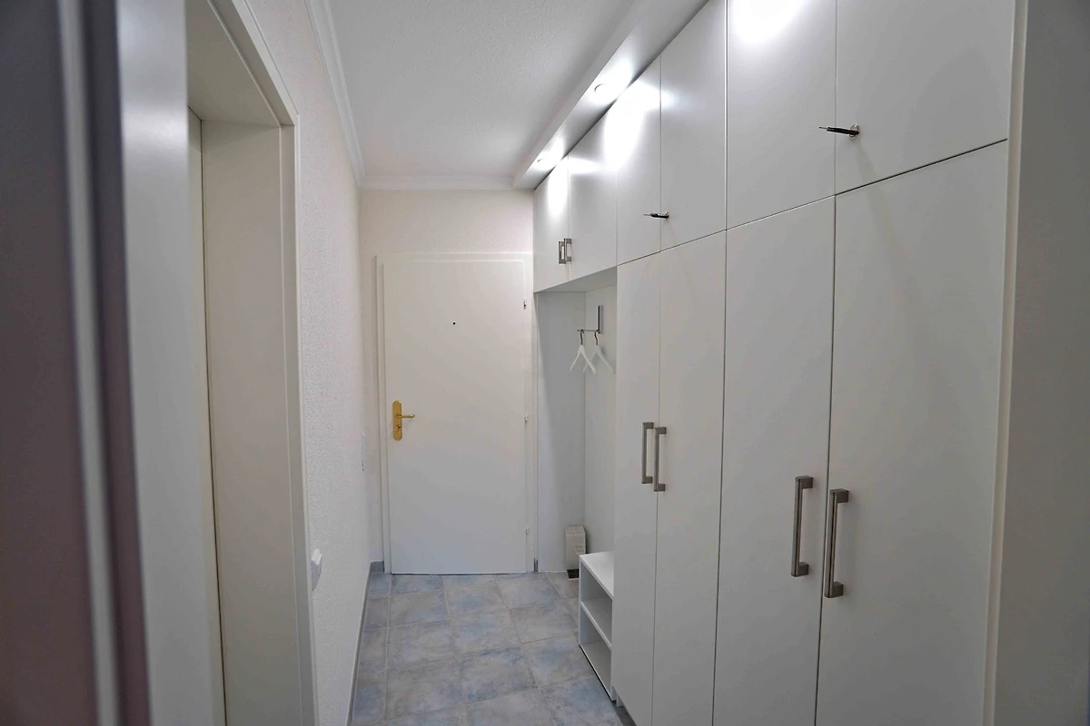 Ein fest zugeordneter PKW-Aussenstellplatz direkt am Haus, steht Ihnen für die Dauer Ihres Aufenthaltes zur Verfügung. Gemeinschaftliche Waschmaschinen und Trockner stehen im Keller des Hauses gegen Entgelt bereit.