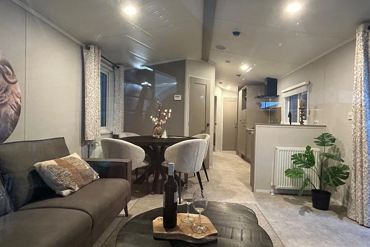 Der Campingplatz liegt direkt am Wattenmeer. Hier stehen 100 Ferienhäuser.
