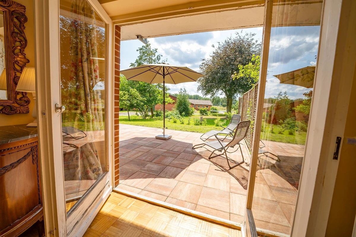 Von der grossen Terrasse und dem Balkon blicken Sie ganz entspannt ins Grüne. Mit viel Liebe zum Detail und hochwertigen Antiquitäten eingerichtet, wurde hier auf grosszügigen 120 qm ein Urlaubsparadies für Familien, Wanderer, Reiter, Jäger und Naturbegeisterte geschaffen.