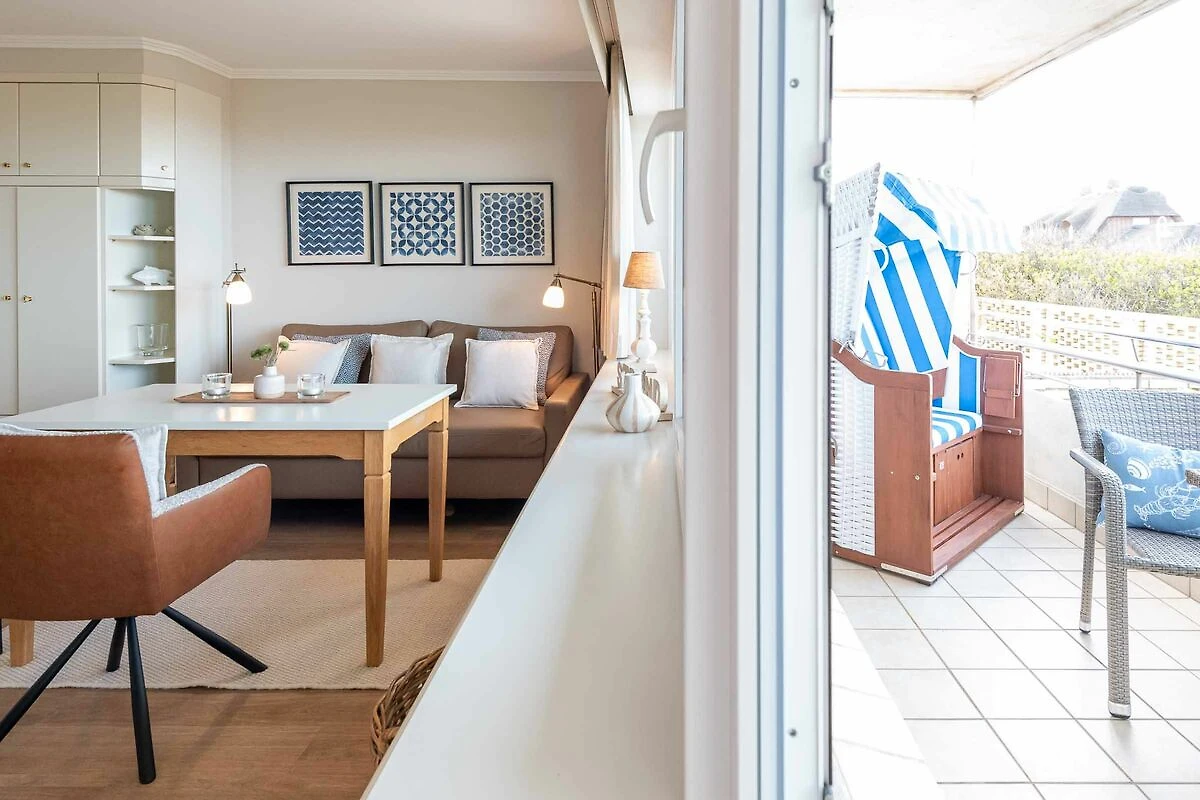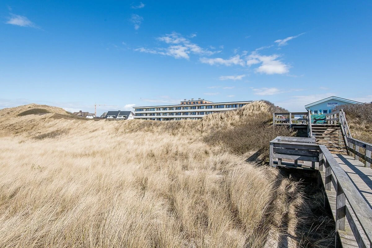 Großzügige Hochparterre-Einraumwohnung im "Dünenhof zum Kronprinzen" mit gemütlichem Wohlfühlambiente und atemberaubenden Blick auf die Nordsee. Umrahmt wird das Wohngebäude an der Westseite von der unberührten Naturlandschaft mit Dünengras und Sylter Heckenrosen.