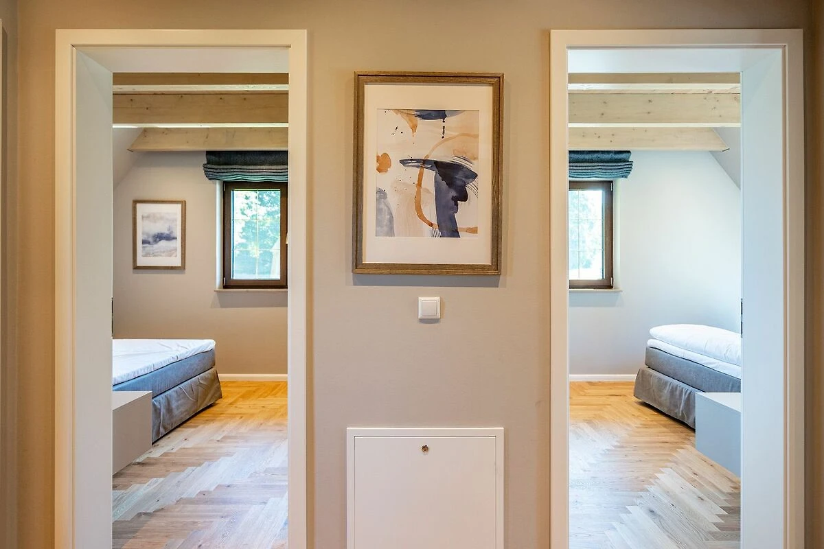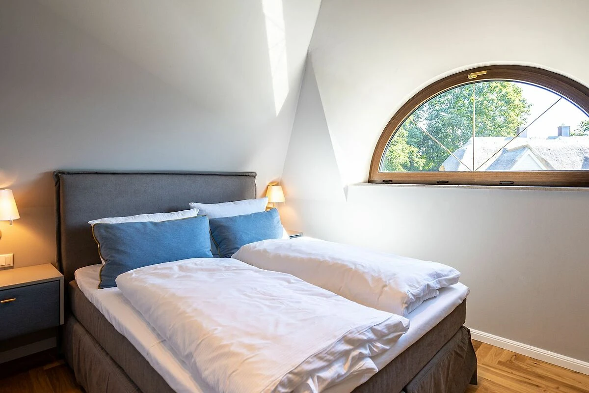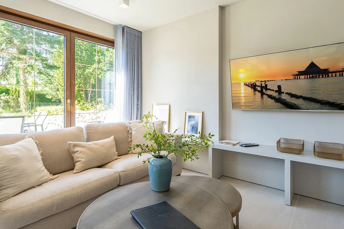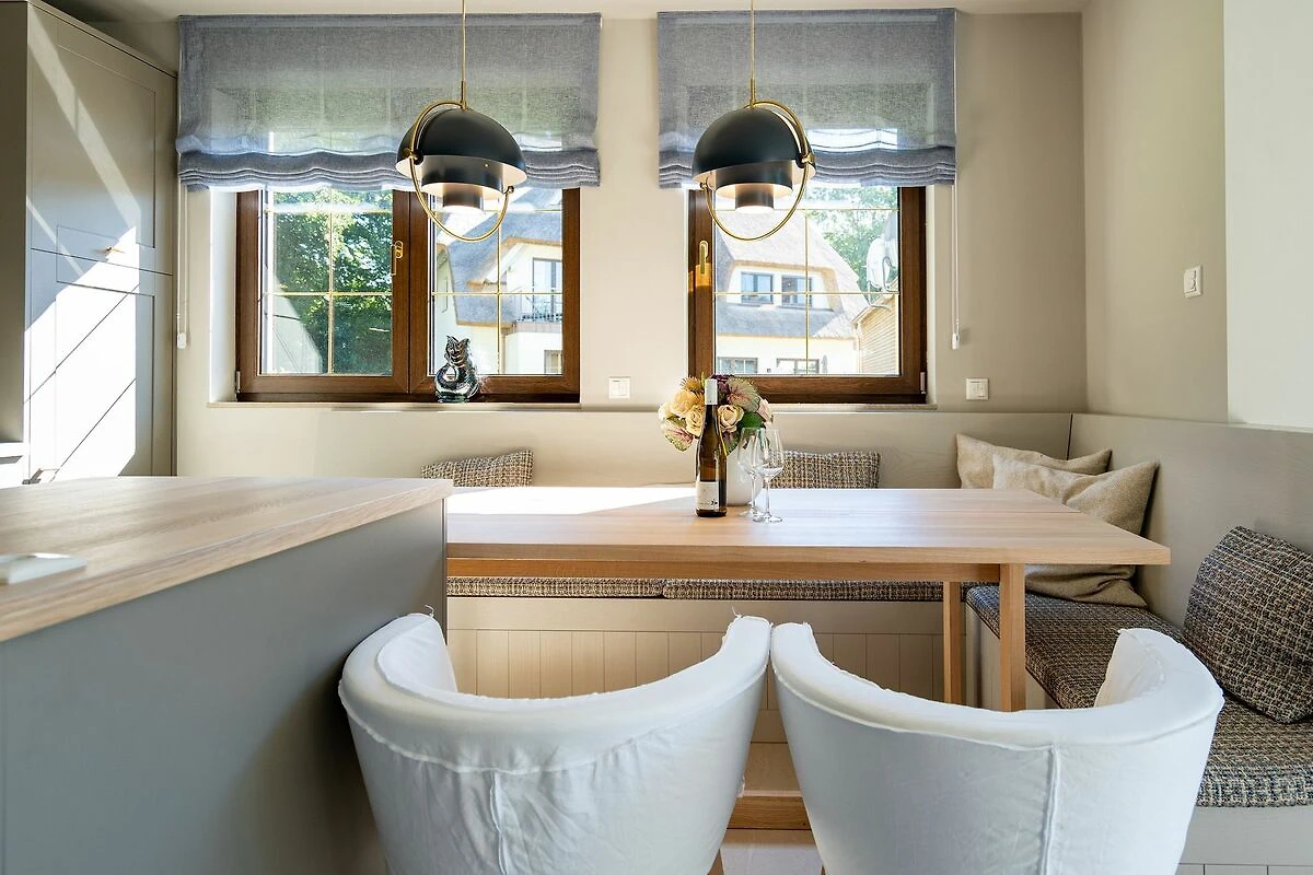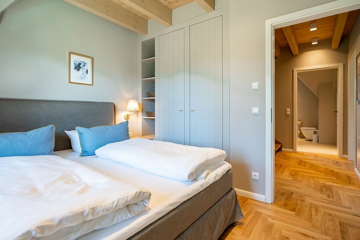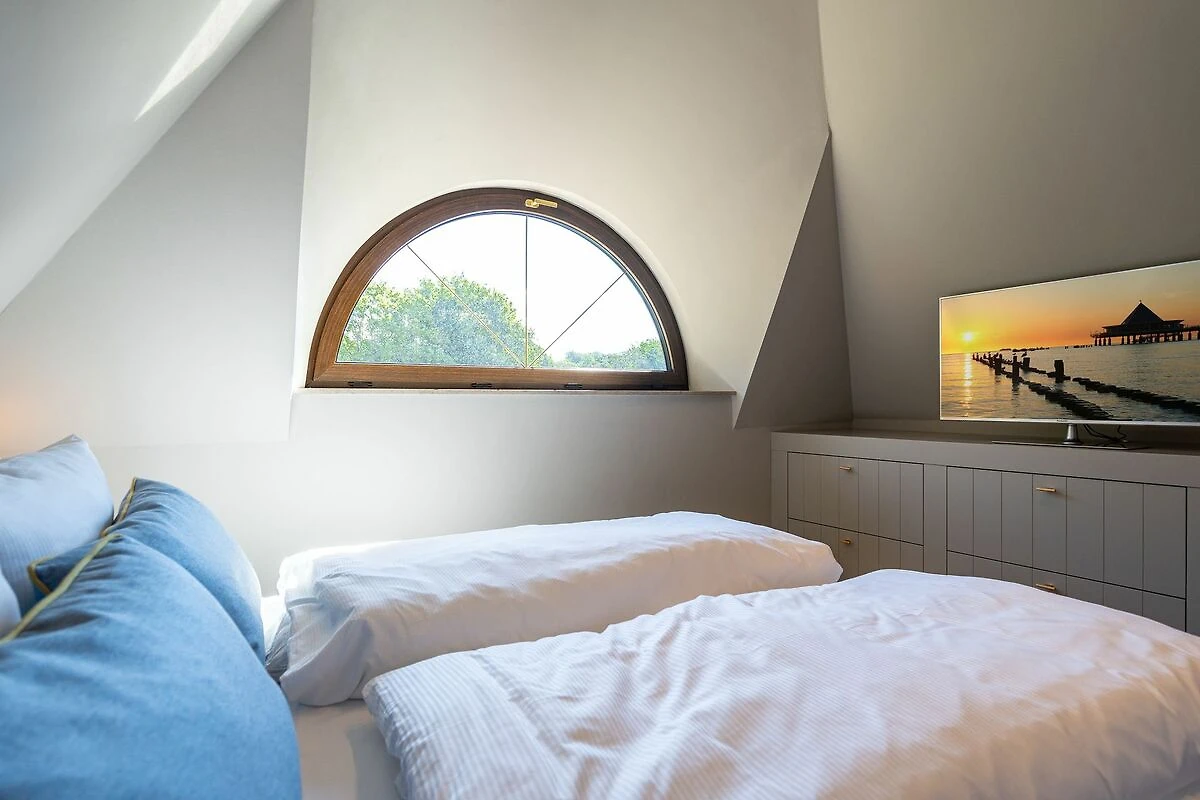 Willkommen im Ferienhaus Reet [&] Meer N°2 im Seebad Heringsdorf. Diese grosszügige Doppelhaushälfte erstreckt sich über drei Etagen und bietet Platz für bis zu 8 Personen. Im Erdgeschoss erwartet Sie eine offene Wohnküche mit einem gemütlichen Essplatz und einer einladenden Sitzgruppe. Hier können Sie gemeinsam Mahlzeiten zubereiten und geniessen. Ein Flat-TV und ein Kaminofen sorgen für zusätzlichen Komfort und eine behagliche Atmosphäre. Von hier aus gelangen Sie auf die Terrasse, die mit Gartenmöbeln ausgestattet ist und Ihnen eine schöne Möglichkeit bietet, die frische Luft im Freien zu geniessen. Das Erdgeschoss verfügt ausserdem über ein Badezimmer mit Dusche, WC und einer Finnischen Sauna, in der Sie wunderbar entspannen können. Ein Waschtrockner steht Ihnen ebenfalls zur Verfügung. Im ersten Obergeschoss finden Sie drei Schlafzimmer, jeweils mit einem komfortablen Boxspringdoppelbett (1,80m x 2,00m), einem Einbaukleiderschrank und in zwei der drei Zimmer ein Flat-TV. Hier können Sie sich zurückziehen und erholsame Nächte verbringen. Zusätzlich gibt es ein Badezimmer mit Dusche, Waschtisch und WC. Zwei Schlafzimmer bieten Ihnen zudem Zugang zum Balkon mit Sonnenliegen, von dem aus Sie den Blick auf die Umgebung geniessen können. Im Dachgeschoss befindet sich ein weiteres Schlafzimmer (aktuell noch ohne Verdunklungsmöglichkeit) mit einem Boxspringdoppelbett, Flat-TV und einer Kommode. Hier finden Sie auch ein kleines Badezimmer mit Waschtisch und WC. Das Dachgeschoss bietet somit zusätzlichen Platz für Ihre Gäste. Für Ihre Fahrzeuge steht ein Carport mit zwei Stellplätzen (mit E-Ladestation - kostenpflichtig) zur Verfügung, damit Sie bequem an- und abreisen können. Kostenfreies WLAN ist selbstverständlich ebenfalls vorhanden, sodass Sie mit Ihren Lieben in Verbindung bleiben können. Das Ferienhaus Reet [&] Meer N°2 in der Triftstrasse 10f verspricht Ihnen einen unvergesslichen Aufenthalt in Heringsdorf. Geniessen Sie die Annehmlichkeiten des Hauses, erkunden Sie die malerische Umgebung und erleben Sie erholsame Tage an der Ostsee.