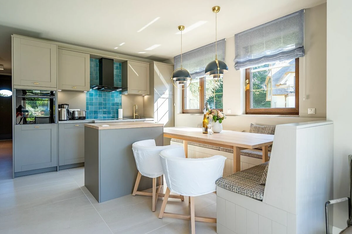 Die Ferienhäuser Reet [&] Meer befinden sich am Ende der Triftstrasse im Seebad Heringsdorf, eingebettet in eine idyllische grüne Umgebung. Hier können Sie die Ruhe und die natürliche Schönheit der Umgebung geniessen. Der Strand ist nur etwa 350 Meter zu Fuss entfernt, sodass Sie schnell und bequem ans Meer gelangen. Erleben Sie erholsame Tage am feinen Sandstrand, geniessen Sie das Rauschen der Wellen und lassen Sie die Sonne auf Ihre Haut scheinen. Für Ihre Einkäufe finden Sie in nur 700 Metern Entfernung verschiedene Einkaufsmöglichkeiten. Schlendern Sie entlang der Promenade und geniessen Sie den Blick auf die Ostsee. Die Seebrücke Heringsdorf (fussläufig erreichbar in 1,8 km) lädt zu erholsamen Spaziergängen ein und bietet Ihnen auch die Möglichkeit, verschiedene gastronomische Angebote und lokale Geschäfte zu erkunden. Die Lage der Ferienhäuser Reet [&] Meer bietet Ihnen somit eine ideale Mischung aus Nähe zum Strand, Ruhe inmitten der Natur und zugleich eine gute Anbindung an Einkaufsmöglichkeiten und Sehenswürdigkeiten. Geniessen Sie einen unvergesslichen Aufenthalt in dieser reizvollen Umgebung des Seebads Heringsdorf.