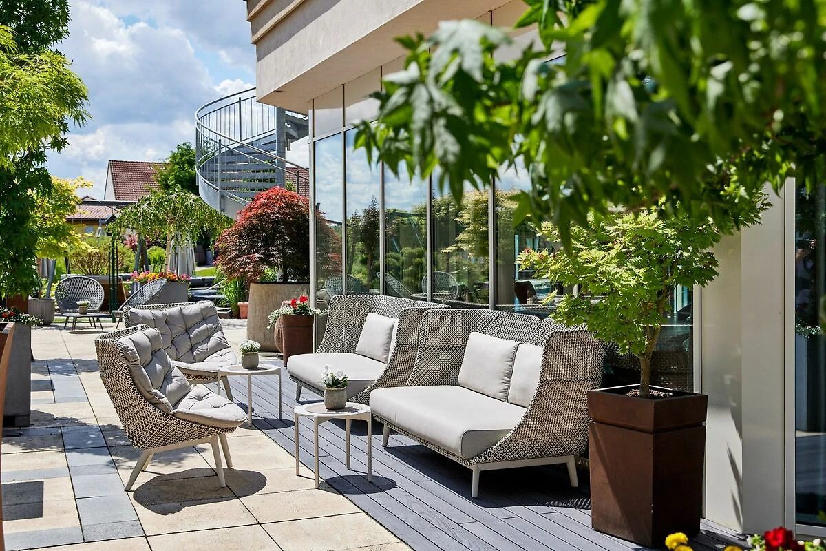 Auf 6.500 qm entfaltet sich Bayerns grösster Wellness- & Wasserwelt ein Refugium das Entspannung neu definiert. Im ganzjährig beheizten Outdoor-Infinity-Pool, im Naturbadesee oder im 35 °C warmen Aussen-Whirlpool erleben Sie die sanfte Kraft des Wassers. Die weitläufige Gartenanlage und stille Ruhezonen laden zum Verweilen ein, während im Innenbereich ein 20 m Schwimmbecken sowie zwei Attraktionspools mit Wasserfallturm, Massageplätzen und Sprudelliegen für Leichtigkeit sorgen. Elf Themen-Saunen schenken Wärme und Regeneration. Im Beauty-Schlössl erwartet Sie ein Ort der Pflege und Schönheit, perfekt auf Ihre Bedürfnisse abgestimmt, mit über 70 Spa-Treatments, die berühren, beleben und verwöhnen.