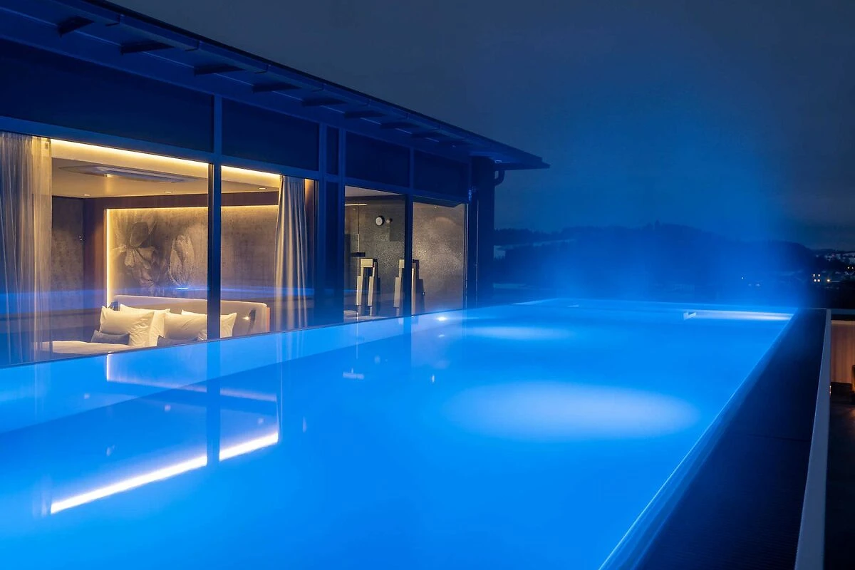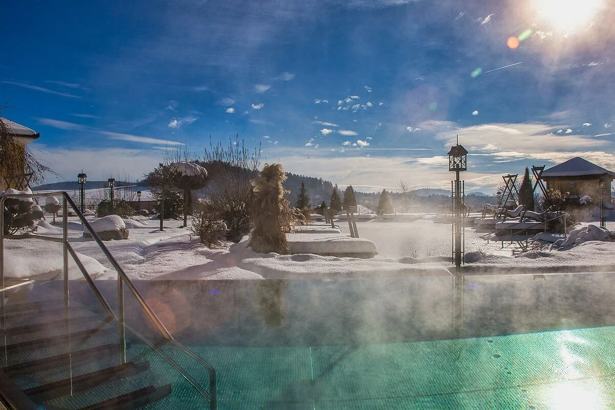 Bayerns grösste Wellness- & Wasserwelt auf 6.500 qm erwartet Sie! Erleben Sie die Kraft des Wassers im ganzjährig beheizten, 25 m langen Outdoor-Infinity-Pool, kühl-erfrischend im 750 qm grossen Naturbadesee oder wohlig-warm im 35°C Aussen-Whirlpool. Flanieren Sie in der Gartenanlage oder träumen Sie in den Ruheoasen ganz sorglos in den Tag hinein. Im Innenbereich finden Sie das 20 m lange Schwimmbecken sowie zwei Attraktionspools mit Wasserfallturm, Massageplätzen und Sprudelliegen. Entspannen Sie in einer der zahlreichen Themen-Saunen oder verwöhnen Sie sich im Beauty-Schlössl mit einer von über 70 individuellen Spa-Anwendungen.