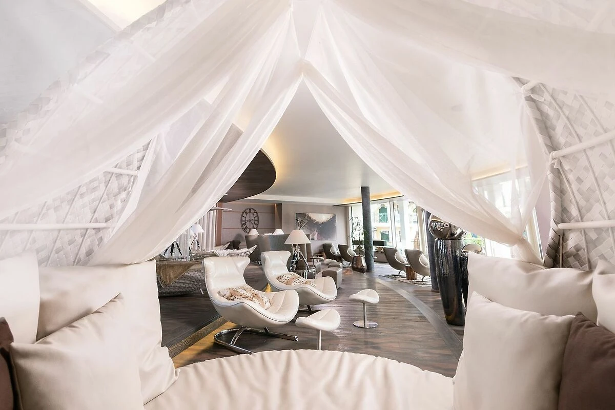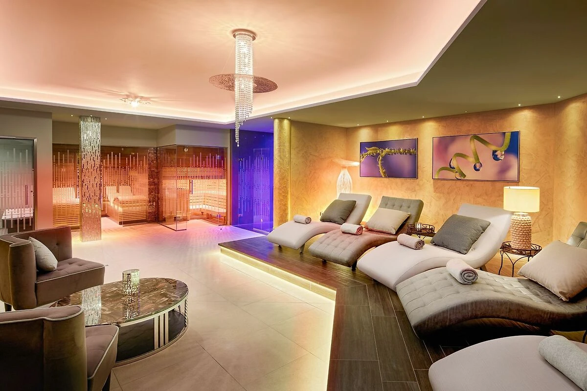 Auf 6.500 qm entfaltet sich Bayerns grösster Wellness- & Wasserwelt ein Refugium das Entspannung neu definiert. Im ganzjährig beheizten Outdoor-Infinity-Pool, im Naturbadesee oder im 35 °C warmen Aussen-Whirlpool erleben Sie die sanfte Kraft des Wassers. Die weitläufige Gartenanlage und stille Ruhezonen laden zum Verweilen ein, während im Innenbereich ein 20 m Schwimmbecken sowie zwei Attraktionspools mit Wasserfallturm, Massageplätzen und Sprudelliegen für Leichtigkeit sorgen. Elf Themen-Saunen schenken Wärme und Regeneration. Im Beauty-Schlössl erwartet Sie ein Ort der Pflege und Schönheit, perfekt auf Ihre Bedürfnisse abgestimmt, mit über 70 Spa-Treatments, die berühren, beleben und verwöhnen.