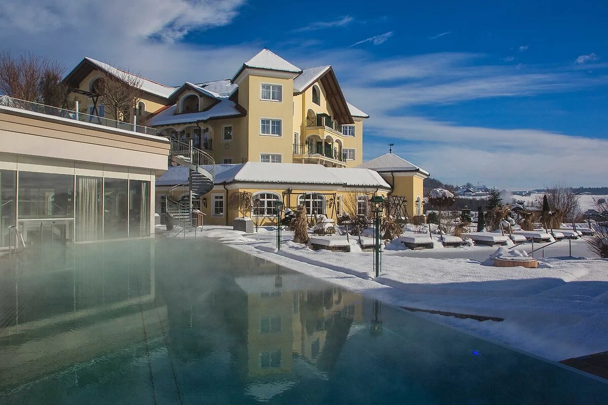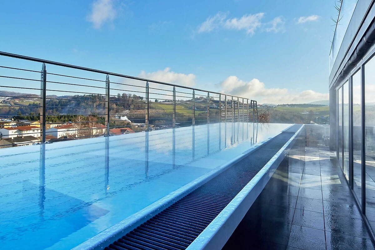 Bayerns grösste Wellness- & Wasserwelt auf 6.500 qm erwartet Sie! Erleben Sie die Kraft des Wassers im ganzjährig beheizten, 25 m langen Outdoor-Infinity-Pool, kühl-erfrischend im 750 qm grossen Naturbadesee oder wohlig-warm im 35°C Aussen-Whirlpool. Flanieren Sie in der Gartenanlage oder träumen Sie in den Ruheoasen ganz sorglos in den Tag hinein. Im Innenbereich finden Sie das 20 m lange Schwimmbecken sowie zwei Attraktionspools mit Wasserfallturm, Massageplätzen und Sprudelliegen. Entspannen Sie in einer der zahlreichen Themen-Saunen oder verwöhnen Sie sich im Beauty-Schlössl mit einer von über 70 individuellen Spa-Anwendungen.