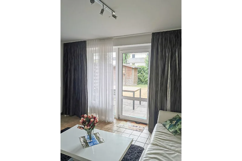 Unser gemütliches Ferienhaus ist eine gepflegte Doppelhaushälfte, die Ihnen eine entspannte und einladende Atmosphäre bietet. Sie betreten das Haus über einen kleinen Vorgarten. Der Hauseingang öffnet sich in einen Hausflur.