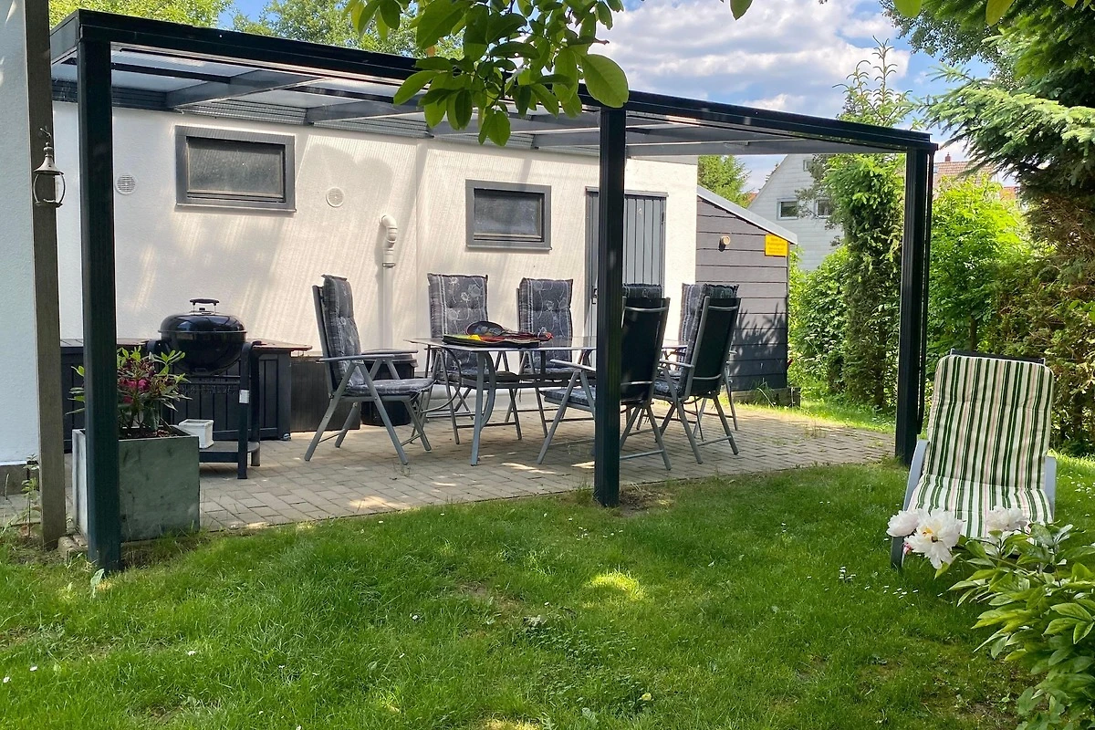 Für unsere Gäste steht eine eigene überdachte Terrasse mit Sitzgelegenheiten und Grill direkt an einem kleinen Bach zur Verfügung.