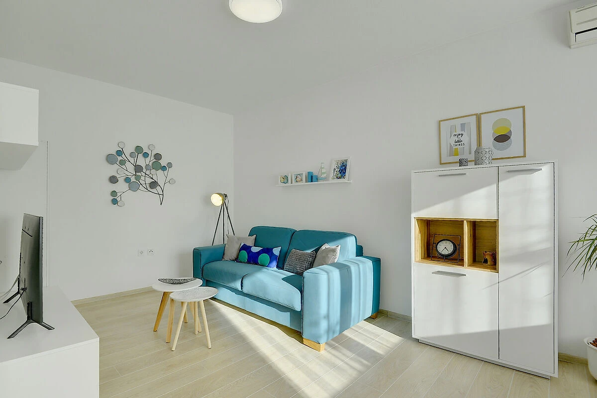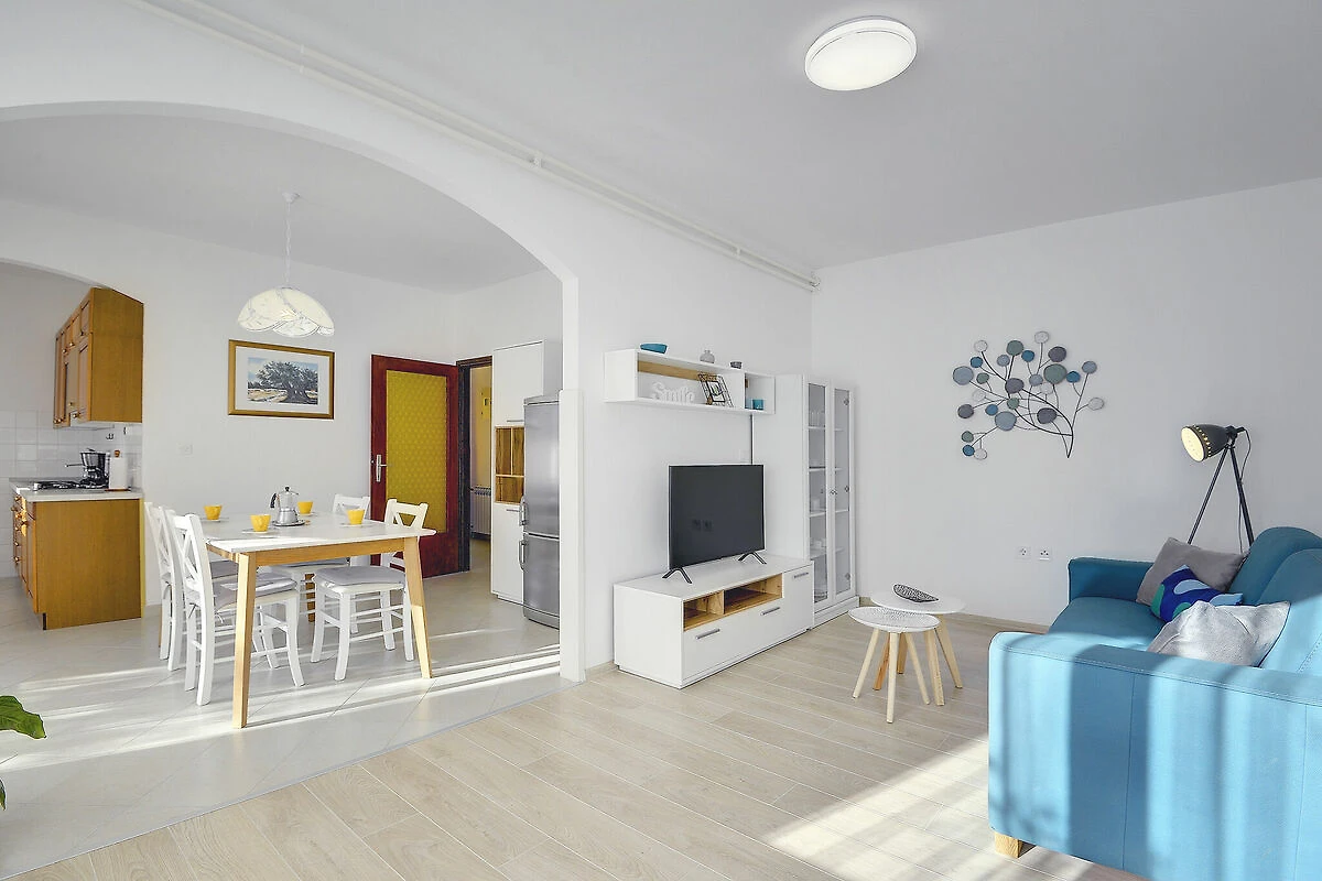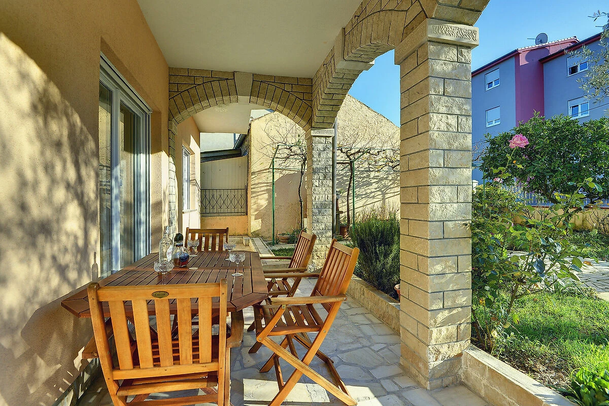 Dieses Apartment in Pula befindet sich im Erdgeschoss. Es bietet eine schöne überdachte Terrasse, ein gepflegtes Wohnzimmer mit Sitzecke und Esstisch, eine Küche, zwei Schlafzimmer und ein Badezimmer. Sie haben einen gemeinsamen umzäunten Garten zu Ihrer Verfügung, schön, wenn Sie Ihr Haustier in den Urlaub bringen, und einen privaten Parkplatz.