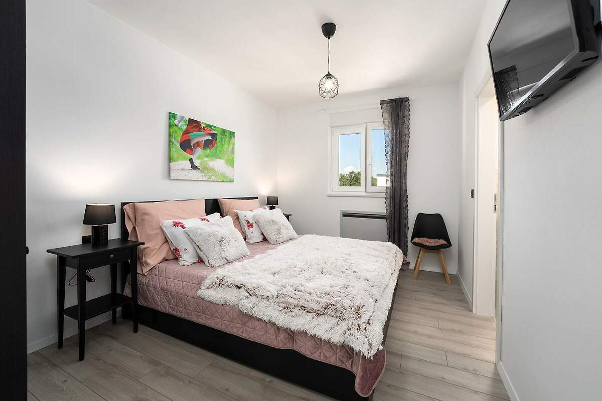 Fewo Felix, 75 m2 mit 2 Schlafzimmer,Wohnzimmer, für 2-5 Pers. free Wlan,2 Klimaanlage,beheizter Pool, Grill,Garten,Parkplatz, nur 5 Min/Auto zum Strand und Zentrum Porec