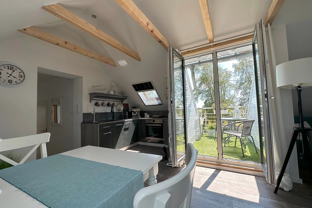 ? **Charmante Dachgeschoss-Ferienwohnung mit Loggia & Weitblick – Ruhe & Natur pur** ? Entdecken Sie ein ganz besonderes Urlaubsdomizil im Dachgeschoss des **„Huus an’t Koornfeld“** – idyllisch gelegen, umgeben von weitläufigen Feldern und Wiesen. Diese liebevoll gestaltete Ferienwohnung ist ein echter **Rückzugsort für alle, die Ruhe, Natur und Komfort** miteinander verbinden möchten ?. Die Wohnung eignet sich ideal für **1–2 Personen**, die fernab vom Alltagstrubel entspannen und neue Energie tanken möchten. Die **moderne und hochwertige Innenausstattung**, kombiniert mit viel Tageslicht und sichtbaren Dachbalken, schafft eine **warme und freundliche Wohlfühlatmosphäre** ✨. --- ? **Wohnen & Ausstattung** Die im Jahr **2023 komplett neu fertiggestellte Dachgeschosswohnung** bietet Ihnen alles, was Sie für einen sorgenfreien Aufenthalt benötigen: • ?️ Gemütliches **Schlafzimmer mit 160 cm breitem Bett** • ?️ **Voll ausgestattete Küche** mit grossem Kühlschrank inkl. Gefrierfach, Spülmaschine und Filterkaffeemaschine • ? Modernes **Badezimmer mit Dusche, WC und Handwaschbecken** • ? Grosser **Flachbildfernseher** für entspannte Abende • ? Alle Dachfenster mit **Verdunkelungsplissees & Fliegengittern** ausgestattet --- ? **Loggia & Aussenbereich** Ein besonderes Highlight ist die **sonnige Loggia**, von der aus Sie einen traumhaften **Weitblick über Felder und Wiesen** geniessen können ?. Hier lässt sich fast den ganzen Tag die Sonne erleben – perfekt für ein entspanntes Frühstück ☕ oder ruhige Abendstunden ?. Der angrenzende Garten, direkt am Kornfeld gelegen, bietet eine **weite, ungestörte Aussicht** und unterstreicht das Gefühl von Freiheit und Naturverbundenheit. --- ? **Lage & Umgebung** Die Ferienwohnung liegt ruhig an einer kleinen Strasse und ist dennoch hervorragend angebunden: • ? **Greetsiel** ca. 11 km entfernt • ? **Norden / Norddeich** ca. 14 km entfernt (beides in ca. **15 Minuten mit dem Auto** erreichbar) Die Umgebung lädt zu **ausgedehnten Spaziergängen, Wanderungen und Fahrradtouren** ?? durch die malerische ostfriesische Landschaft ein. Ob Erholung oder aktive Urlaubsgestaltung – **hier ist beides möglich**. --- ✨ **Fazit** Diese Dachgeschoss-Ferienwohnung vereint **exklusive Ausstattung, naturnahe Lage und modernen Wohnkomfort** auf ideale Weise. Geniessen Sie sonnige Stunden auf der Loggia, entdecken Sie die nahegelegenen Küstenorte und erleben Sie einen Urlaub, der **Erholung und kleine Abenteuer** perfekt miteinander verbindet ?. ? **Virtueller 360°-Rundgang:** ? [https://my.matterport.com/show/?m=CrGVSZY2WsA](https://my.matterport.com/show/?m=CrGVSZY2WsA) ?
