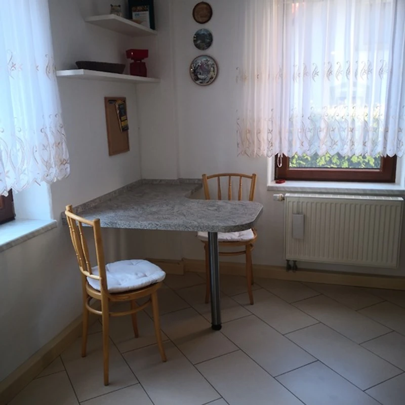 Das Badezimmer ist mit Föhn und allen wichtigen Annehmlichkeiten versehen. Familien mit kleinen Kindern profitieren von einem Babybett und einem Hochstuhl. Die Nichtraucher-Wohnung bietet direkten Zugang zu einer sonnigen Terrasse mit Gartenmöbeln – perfekt für entspannte Stunden im Freien. Auch Monteure sind herzlich willkommen und finden hier einen angenehmen Rückzugsort nach getaner Arbeit.