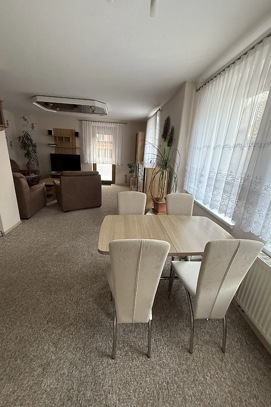 Willkommen in der Ferienwohnung Neukirch Lausitz – Ihr Rückzugsort für zwei Personen inmitten der Oberlausitz. Auf großzügigen 80 m² erwartet Sie ein Schlafzimmer mit komfortablem Bett und hochwertiger Bettwäsche, das für erholsame Nächte sorgt. Die moderne Küchenzeile ist vollständig ausgestattet: Hier finden Sie einen Geschirrspüler, eine Mikrowelle, einen Wasserkocher, eine Kaffeemaschine und alles, was Sie für die Zubereitung Ihrer Lieblingsspeisen benötigen. Der offene Wohn- und Essbereich lädt mit einem großen Esstisch und gemütlicher Sitzgelegenheit zum Verweilen ein. Für Unterhaltung sorgt ein TV und kostenloses WLAN.