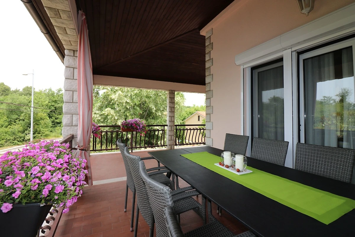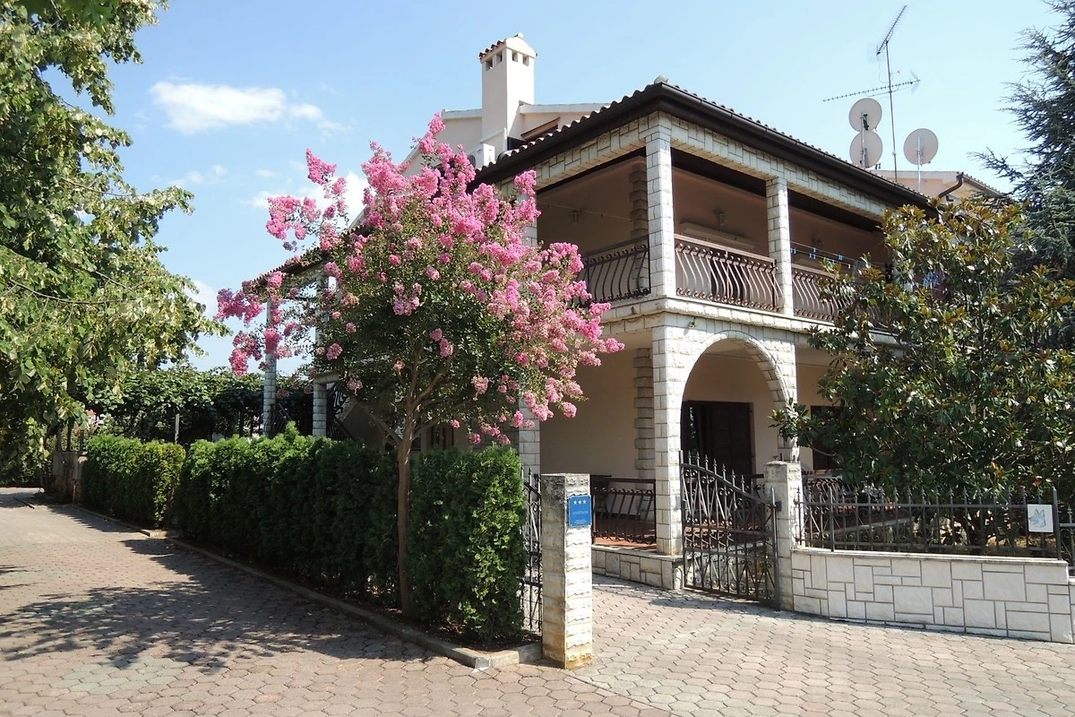 Das beeindruckende, 5000m2 grosse, umzäunte Grundstück der Anlage besticht durch einen wunderschön angelegten Garten mit Blumen und Olivenbäumen, überdachten Parkmöglichkeiten für mehrere Autos, eine gemauerte Grillstelle mit Gartenmöbeln sowie einen abgeschiedenen, 50m2 grossen Pool mit Sonnenliegen, der von Grünflächen umgeben ist. Die Besitzerfamilie heisst Sie im Erdgeschoss des Hauses willkommen, was eine persönliche und familiäre Atmosphäre garantiert.