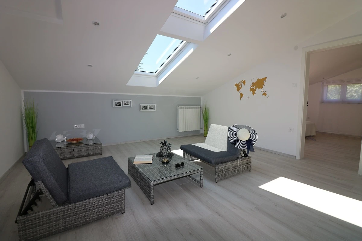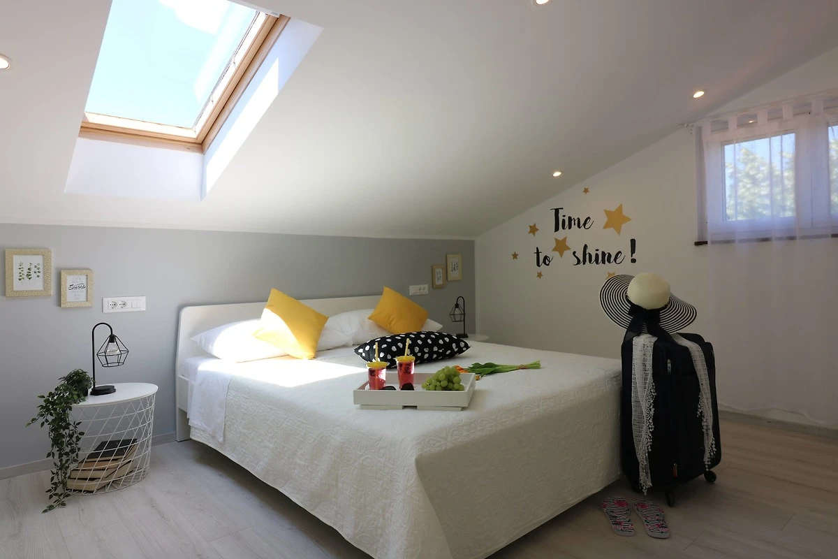 Die Ferienwohnung Luna, eine geräumige Unterkunft, die sich ideal für bis zu 8 Gäste eignet, erstreckt sich über zwei Etagen im 1. Stock. Sie umfasst eine Wohnfläche von 190qm. Im unteren Bereich erwartet die Gäste ein grosszügiges Wohnzimmer mit einem Essbereich und Zugang zu einem 40qm grossen Balkon mit Gartenmöbeln, eine voll ausgestattete Küche, ein Doppelzimmer sowie ein Badezimmer mit Dusche/WC. Die obere Etage beherbergt drei weitere Doppelbettzimmer und ein Badezimmer mit Dusche/WC sowie eine gemütliche Loungegarnitur im Flur. Komplett klimatisiert und mit WLAN ausgestattet, bietet diese Ferienwohnung jeglichen Komfort.