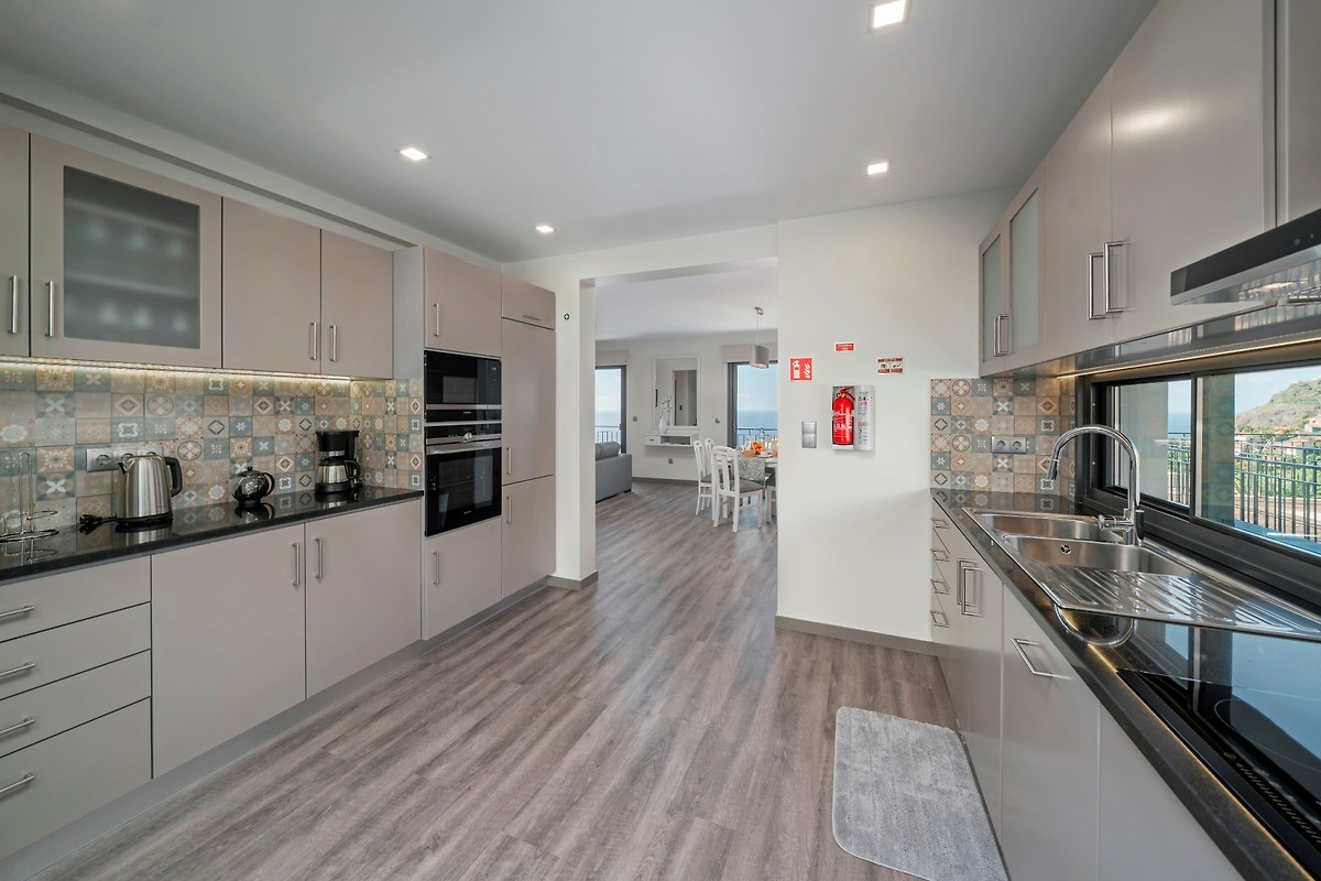 Neubau über den Dächern von Calheta in Mitten des örtlichen Eukalyptuswaldes. Geniessen Sie die traumhafte Aussicht, egal ob im beheizbaren Pool, an der Feuerstelle oder beim Grill...