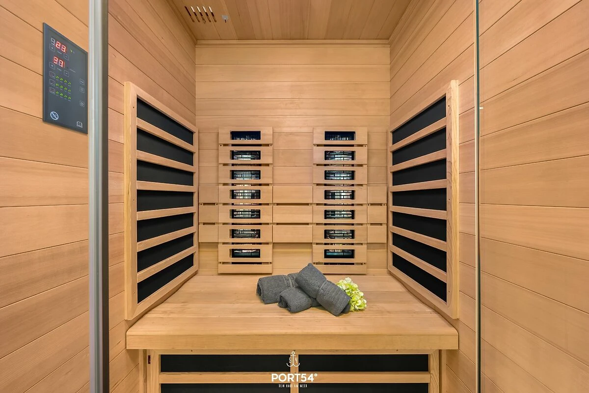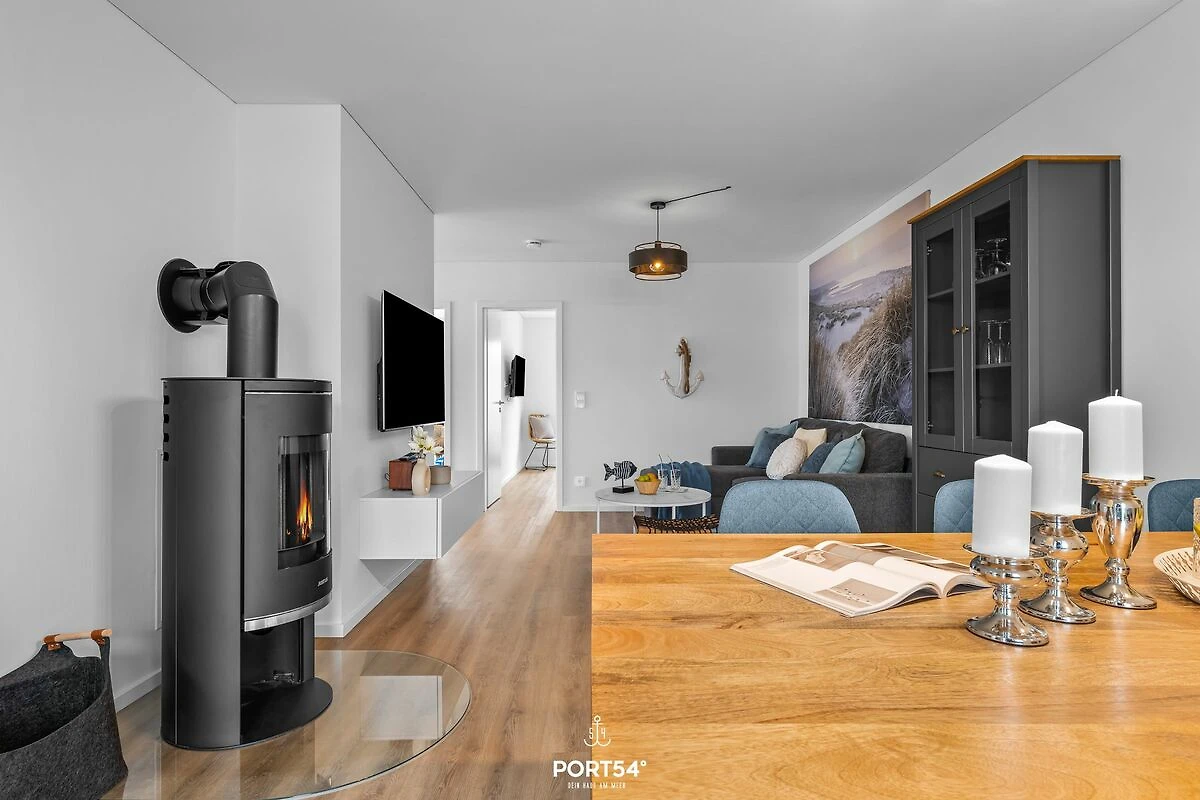Die Ferienwohnung "Wellenkrone" liegt im Erdgeschoss und bietet Ihnen einen angenehmen und entspannten Urlaub. Neben zwei Schlafzimmern bietet die Wohnung ein Wellnessbad für Genießer. Entspannen Sie sich nach einer langen Fahrradtour in der Infrarot-Sauna. Ein Schlafzimmer ist mit einem Doppelbett (180×200cm) ausgestattet, das zweite Schlafzimmer bietet zusätzlich zu einem Doppelbett (140×200cm) ein Einzelbett (90×200cm). An nicht so schönen Tagen bietet der Kamin mollige Wärme, entspannen Sie einfach mal und lassen die Seele baumeln. Ebenso können Sie Ihre Zeit mit der gestellten Spielesammlung verbringen und viel Spaß mit der Familie haben. Die offene Küche mit großzügigem Essbereich lädt zum Kochen und Genießen ein. Von der Terrasse aus können Sie das Grün voll und ganz genießen. Legen Sie im hauseigenem Strandkorb die Füße hoch und genießen Sie Ihren Urlaub und die Umgebung. Lassen Sie den Tag bei einem entspannten Grillabend ausklingen. Mitgebrachte Fahrräder können Sie im abschließbaren Fahrradschuppen unterstellen. Es gibt eine Ladestation für E-Bikes und E-Autos.