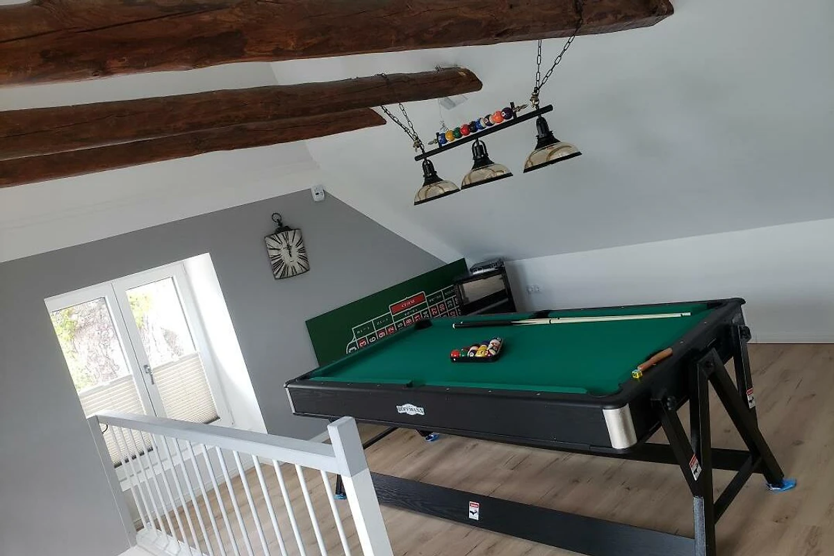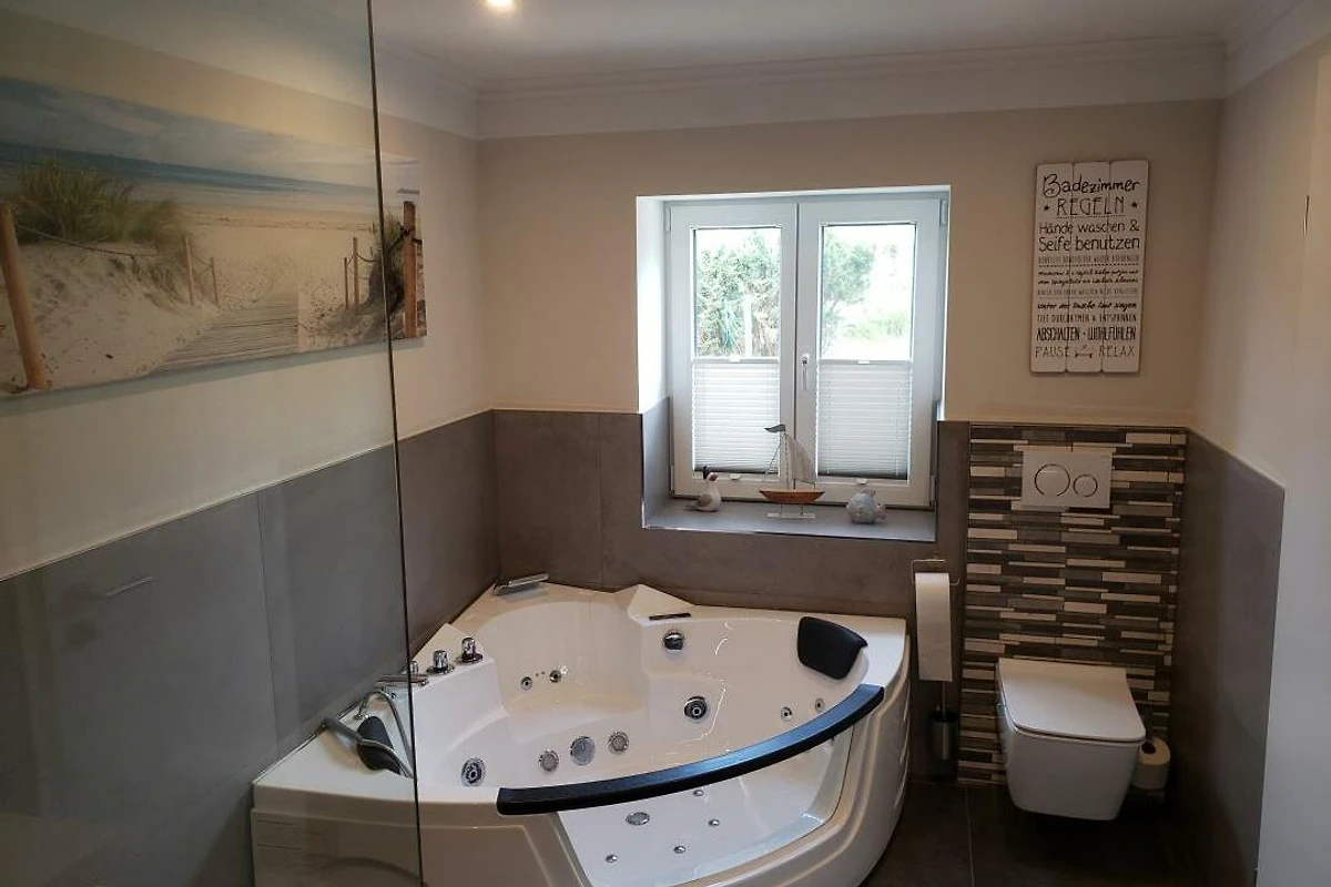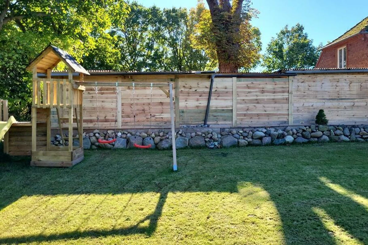 Herzlich willkommen im Ferienhaus unter der Kastanie. Diese 1866 erbaute Doppelhaushälfte wurde von mir in den letzten Jahren mühevoll kernsaniert, modernisiert und nach neusten Standards für sie als Gast hergerichtet. Bei dieser Immobilie handelt es sich um ein Ferienhaus mit 3 Schlafzimmern, einem Schlafboden einem offenen Wohn und Essbereich im Obergeschoss, sowie einem Badezimmer, einem Hauswirtschaftsraum und einer modernen und komeplett ausgestatteten Küche. Das 1835 m² grosse Grundstück befindet sich im Schwerpunkt derzeit noch in der Fertigstellung. Zur Strassenseite befindet sich ein Zaun sowie ein Hoftor das restliche Grundstück ist komplett eingezäunt mit einer Höhe von 80 bis 100 cm. Ebenfalls befindet sich derzeit im Bau eine 35m2 grosse überdachte Aussenterasse fertigstellung diesen Sommer. Parkplätze sind mehr als genügend vorhanden. Bringen sie gerne ihr Haustier mit Vierbeiner sind bei mir herzlich willkommen. Bitte bringen Sie die Bettwäsche und Handtücher ausreichend selbst mit. Eine Waschmaschine und Trockner befinden sich im Ferienhaus. Was erwartet unsere Gäste im Innenbereich? Sie werden empfangen von einem lichtdurchfluteten Flur von wo aus sie überall im Haus hingelangen. Zu ihrer rechten die offene Treppe nach oben in den grosszügigen Wohn- und Essbereich ausgestattet mit Panoramakaminofen für kalte romantische Tage, mit einem Schlafboden mit separatem TV einem grosszügigen Esstisch für 8 Personen, einem Flachbild Smart TV, einem Beamer mit Leinwand einem Ventilator sowie als Highlight eine Dartscheibe und einem Billard Tisch zum Drehen mit Airhockey und die Möglichkeit zu Pokern. Unten erwarten sie 2 grosszügige Schlafzimmer mit jeweils einem Boxspring Doppelbett, einer Kommode und einem Kleiderschrank mit Spiegel, genügend Steckdosen am Bett und in jedem Schlafzimmer einen Smart TV sowie WLAN im ganzen Haus. Das Kinderschlafzimmer besteht aus einem Etagenbett sowie einem Einzelbett und einem Bettkasten zum ausziehen und ebenfalls einem Smart TV. Im Hauswirtschaftsraum erwartet sie eine grosse Waschmaschine einen Trockner ein separates Waschbecken und eine Nebeneingangstür nach draussen auf die Terrasse. Die Küche überzeugt durch ihre komplette Ausstattung inkl. modernem Tresen mit Sitzmöglichkeiten und Blick auf den Garten/ die Terrasse. Das Badezimmer überzeugt durch die ebenerdige geräumige offene Dusche durch verschiedene Lichteffekte und natürlich der Whirlwanne für 2 Personen. Des Weitern befindet sich im ganzen Haus Fussbodenheizung für jeden Raum, kostenfreies separat steuerbares WLAN, in jedem Raum dimmbare LED Spots durch an und ausschalten steuerbar sowie im Flur und Hauswirtschaftsraum Bewegungsmelder die bei Betreten des Raumes angehen. Haustiere sind bei mir herzlich willkommen, aber bitte nicht auf den Möbeln, damit wir noch alle lange Freude an der Unterkunft haben :) Holz für die kalten Wintertage ist ebenfalls vorhanden. Bitte beachten Sie die verschiedenen Hinweise zu Reinigung der Dusche z.B. und anderen Infos im Haus. Bitte bringen Sie die Bettwäsche und ausreichend Handtücher selbst mit. Eine Waschmaschine und Trockner befinden sich im Ferienhaus. Update - Eine neue Sauna im Garten kann ab 25.07.2024 ebenfalls genutzt werden. Ich wünsche ihnen einen schönen Aufenthalt und hoffe sie haben ein paar schöne Tage an der Schleswig Holsteinischen Ostseeküste.