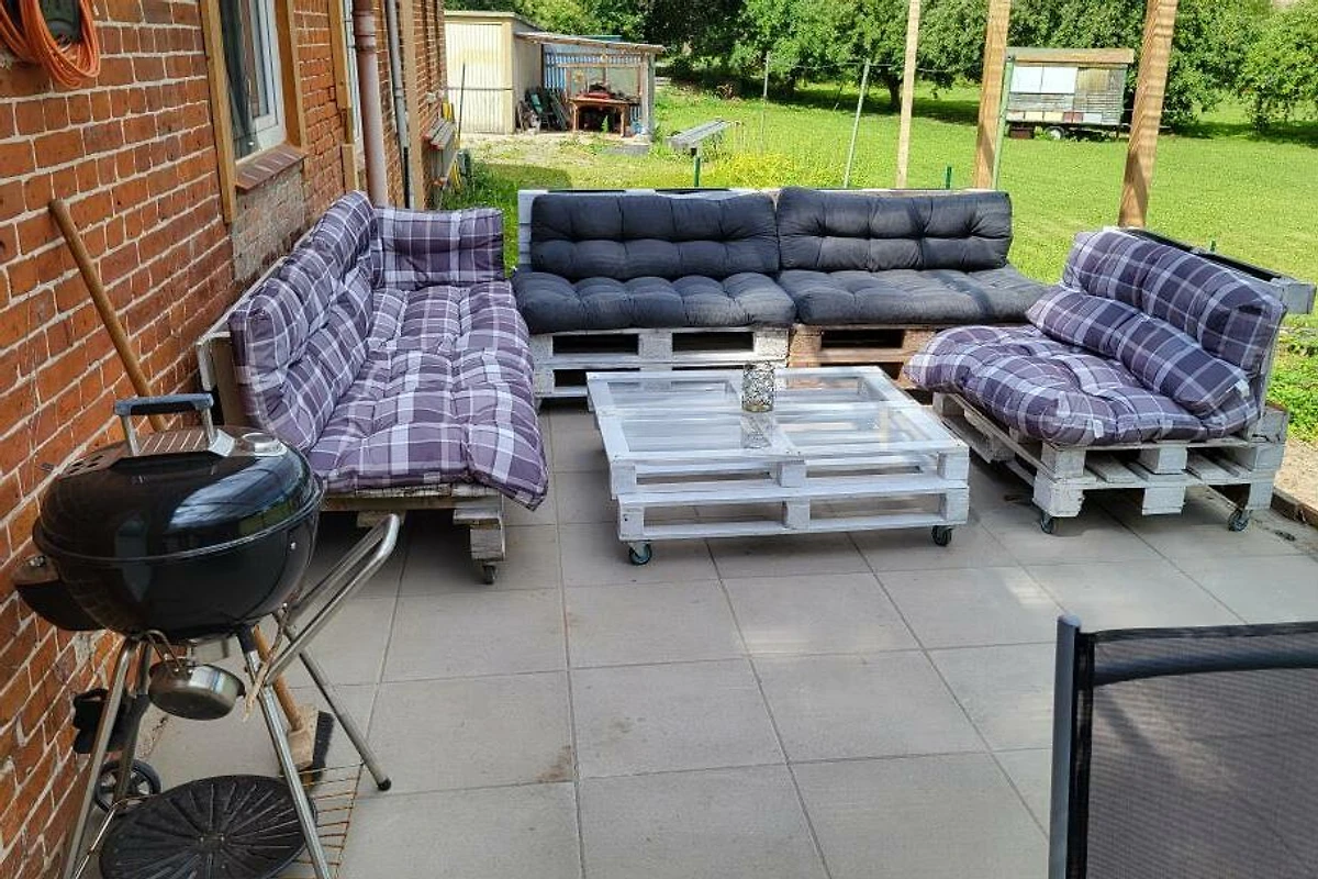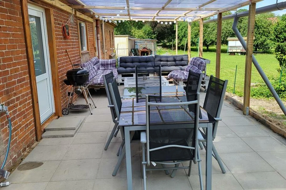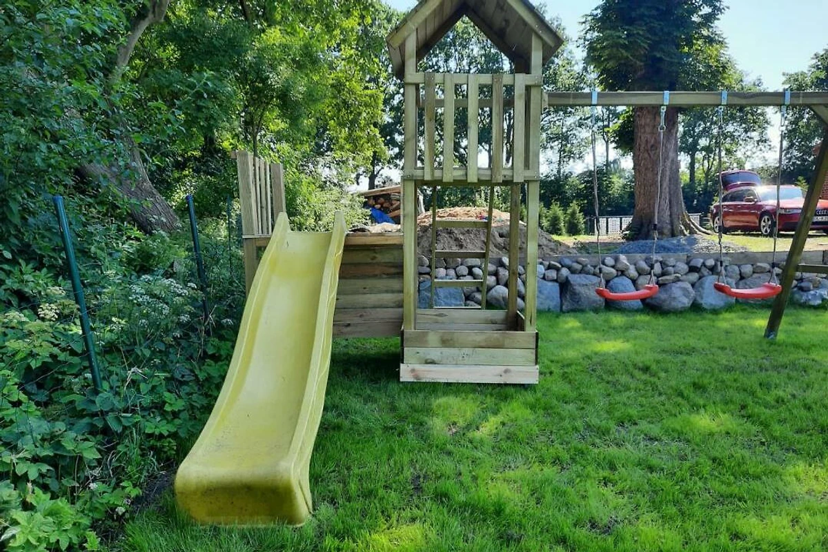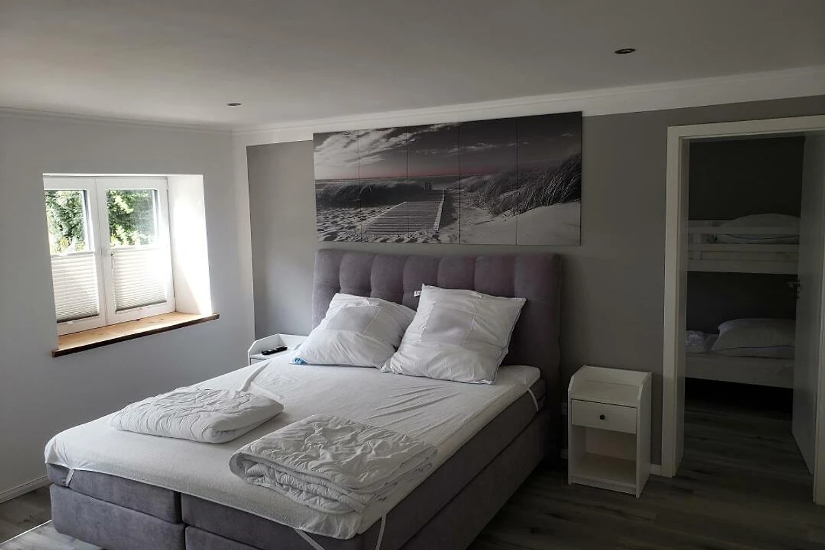 Herzlich willkommen im Ferienhaus unter der Kastanie. Diese 1866 erbaute Doppelhaushälfte wurde von mir in den letzten Jahren mühevoll kernsaniert, modernisiert und nach neusten Standards für sie als Gast hergerichtet. Bei dieser Immobilie handelt es sich um ein Ferienhaus mit 3 Schlafzimmern, einem Schlafboden einem offenen Wohn und Essbereich im Obergeschoss, sowie einem Badezimmer, einem Hauswirtschaftsraum und einer modernen und komeplett ausgestatteten Küche. Das 1835 m² grosse Grundstück befindet sich im Schwerpunkt derzeit noch in der Fertigstellung. Zur Strassenseite befindet sich ein Zaun sowie ein Hoftor das restliche Grundstück ist komplett eingezäunt mit einer Höhe von 80 bis 100 cm. Ebenfalls befindet sich derzeit im Bau eine 35m2 grosse überdachte Aussenterasse fertigstellung diesen Sommer. Parkplätze sind mehr als genügend vorhanden. Bringen sie gerne ihr Haustier mit Vierbeiner sind bei mir herzlich willkommen. Bitte bringen Sie die Bettwäsche und Handtücher ausreichend selbst mit. Eine Waschmaschine und Trockner befinden sich im Ferienhaus. Was erwartet unsere Gäste im Innenbereich? Sie werden empfangen von einem lichtdurchfluteten Flur von wo aus sie überall im Haus hingelangen. Zu ihrer rechten die offene Treppe nach oben in den grosszügigen Wohn- und Essbereich ausgestattet mit Panoramakaminofen für kalte romantische Tage, mit einem Schlafboden mit separatem TV einem grosszügigen Esstisch für 8 Personen, einem Flachbild Smart TV, einem Beamer mit Leinwand einem Ventilator sowie als Highlight eine Dartscheibe und einem Billard Tisch zum Drehen mit Airhockey und die Möglichkeit zu Pokern. Unten erwarten sie 2 grosszügige Schlafzimmer mit jeweils einem Boxspring Doppelbett, einer Kommode und einem Kleiderschrank mit Spiegel, genügend Steckdosen am Bett und in jedem Schlafzimmer einen Smart TV sowie WLAN im ganzen Haus. Das Kinderschlafzimmer besteht aus einem Etagenbett sowie einem Einzelbett und einem Bettkasten zum ausziehen und ebenfalls einem Smart TV. Im Hauswirtschaftsraum erwartet sie eine grosse Waschmaschine einen Trockner ein separates Waschbecken und eine Nebeneingangstür nach draussen auf die Terrasse. Die Küche überzeugt durch ihre komplette Ausstattung inkl. modernem Tresen mit Sitzmöglichkeiten und Blick auf den Garten/ die Terrasse. Das Badezimmer überzeugt durch die ebenerdige geräumige offene Dusche durch verschiedene Lichteffekte und natürlich der Whirlwanne für 2 Personen. Des Weitern befindet sich im ganzen Haus Fussbodenheizung für jeden Raum, kostenfreies separat steuerbares WLAN, in jedem Raum dimmbare LED Spots durch an und ausschalten steuerbar sowie im Flur und Hauswirtschaftsraum Bewegungsmelder die bei Betreten des Raumes angehen. Haustiere sind bei mir herzlich willkommen, aber bitte nicht auf den Möbeln, damit wir noch alle lange Freude an der Unterkunft haben :) Holz für die kalten Wintertage ist ebenfalls vorhanden. Bitte beachten Sie die verschiedenen Hinweise zu Reinigung der Dusche z.B. und anderen Infos im Haus. Bitte bringen Sie die Bettwäsche und ausreichend Handtücher selbst mit. Eine Waschmaschine und Trockner befinden sich im Ferienhaus. Update - Eine neue Sauna im Garten kann ab 25.07.2024 ebenfalls genutzt werden. Ich wünsche ihnen einen schönen Aufenthalt und hoffe sie haben ein paar schöne Tage an der Schleswig Holsteinischen Ostseeküste.