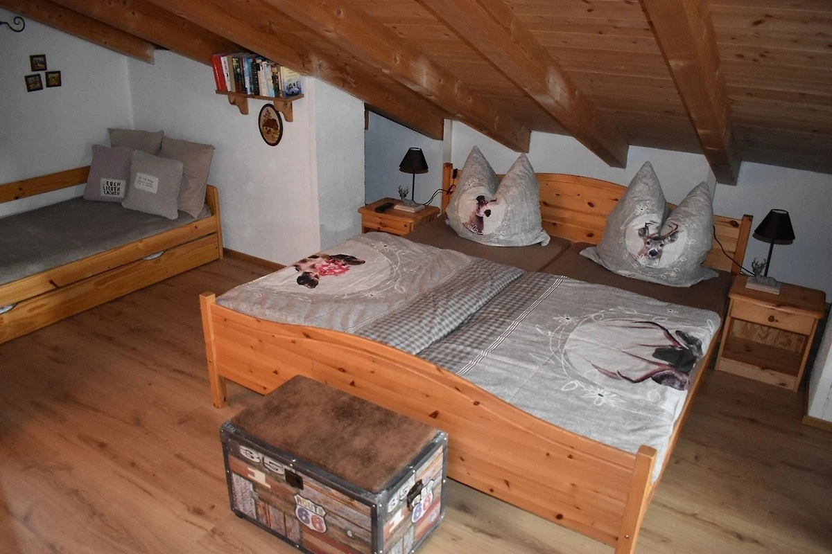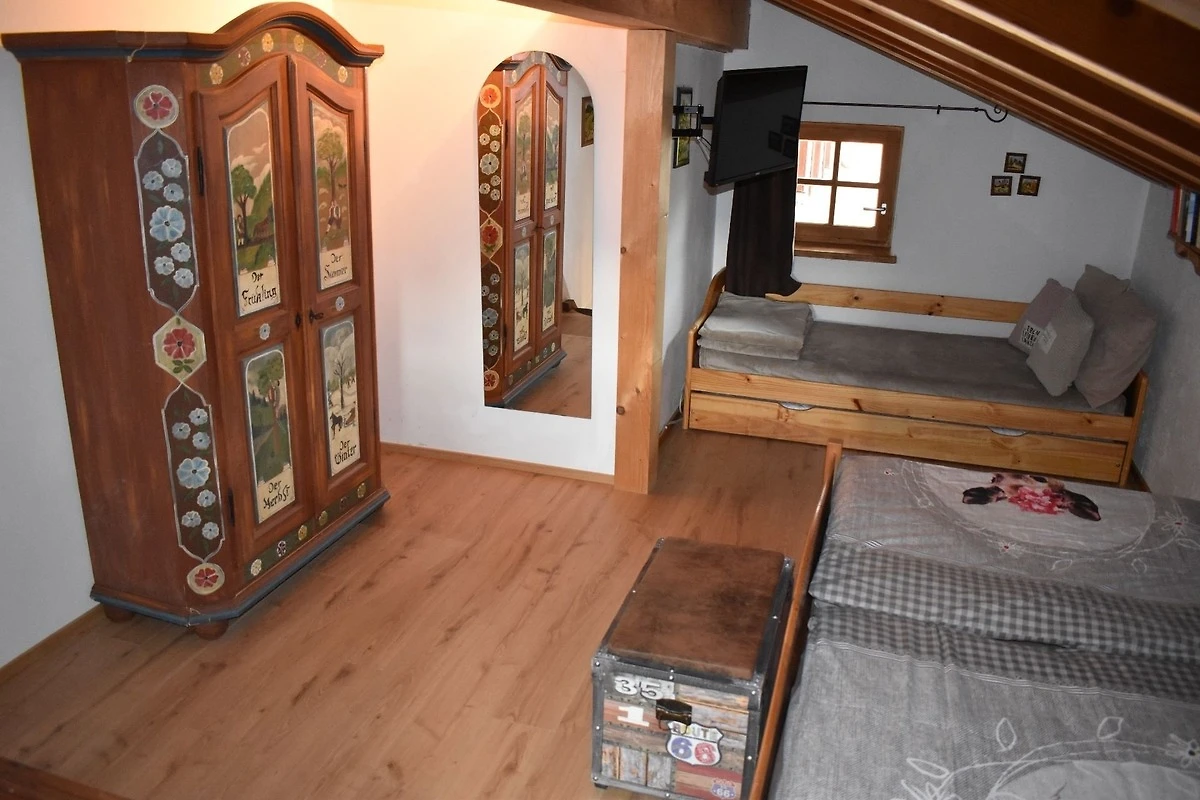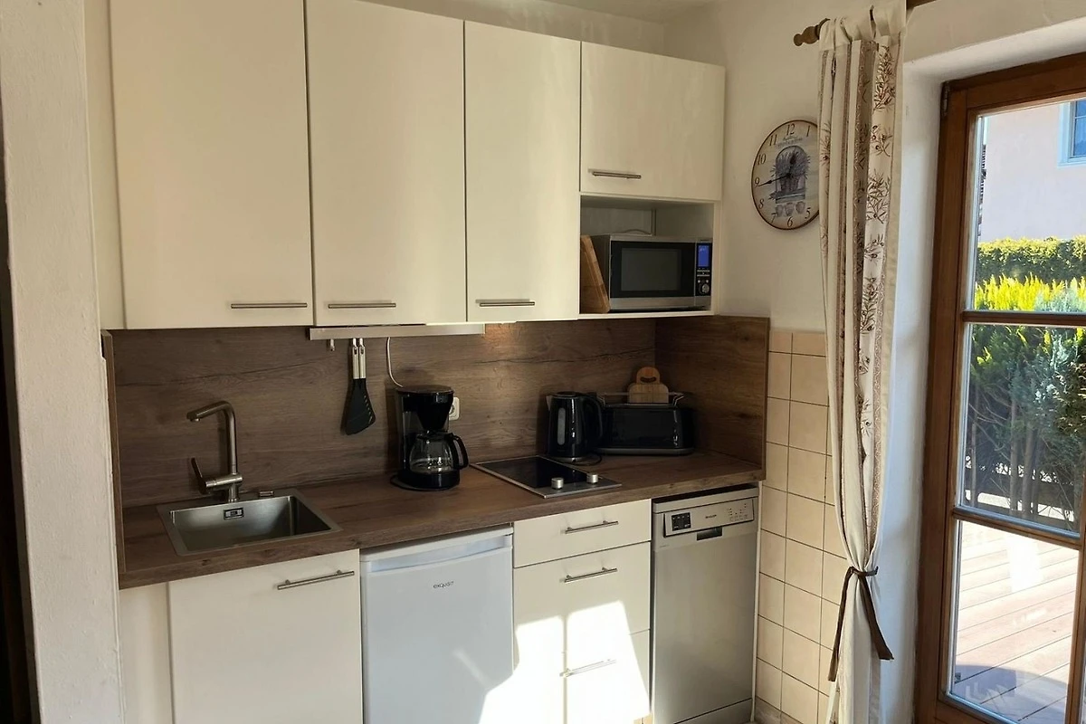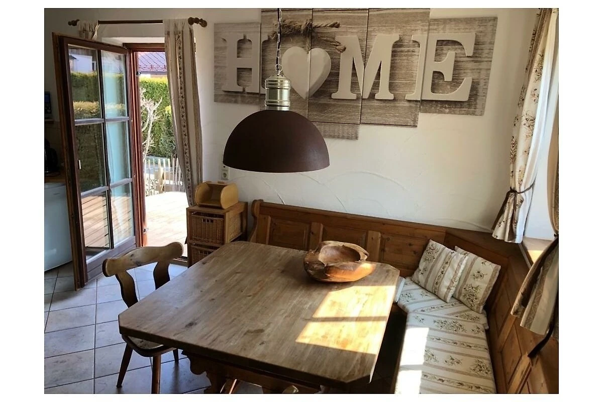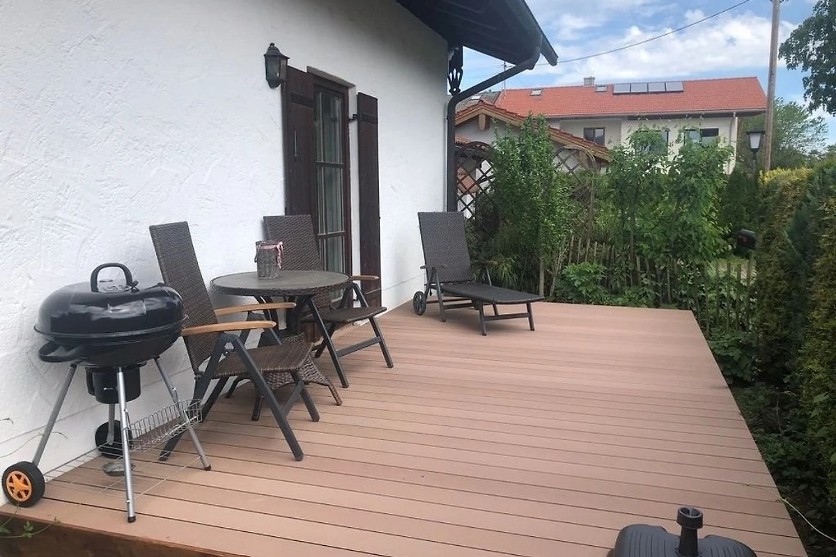 Eine komfortable 4 Sterne Maisonettenwohnung (SZ im 1. OG ohne Lift über Treppe erreichbar) mit grossem Wohnraum (Flatscreenfernseher und Radio), Essecke und gemütlicher Eckcouch; das Bad mit Dusche und WC ebenfalls im Erdgeschoss (saniert 2021); der Schlafraum im Obergeschoss (Ehebett und ausziehbares Doppelbett) verfügt ebenfalls über einen kleinen Fernseher an der Wand, geeignet ist die 54m² Wohnung für 2 Personen (Aufbettung für 1 Kind ist möglich), wenn ein gemeinsames Schlafzimmer akzeptiert wird, die besonders grosse Terrasse (saniert 2022) bietet einen wunderbaren Blick auf die Berge und kann für Grillabende oder zum Frühstück bestens genutzt werden, Liege, Grill und Gartenmöbel sowie alle modernen elektrischen Haushaltsgeräte (inkl. Geschirrspüler und Mikrowelle, kein Ofen) sind vorhanden in nur 7 Minuten Entfernung zu Fuss ist der wunderschöne Reifinger Badeweiher zu erreichen (Strandbad, Restaurant) bis zum Chiemsee sind es 6 km, Märchenschloss von Ludwig II