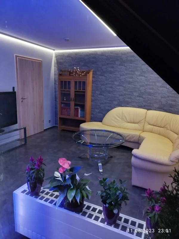 Im Wohnzimmer mit Balkon steht Ihnen ein grosser Plasma Flachbildschirm und dem Streamingdienst Netflix zur Verfügung. Die dimmbare LED Ambientebeleuchtung rundet die Sache ab, um die Abende ausklingen zu lassen.