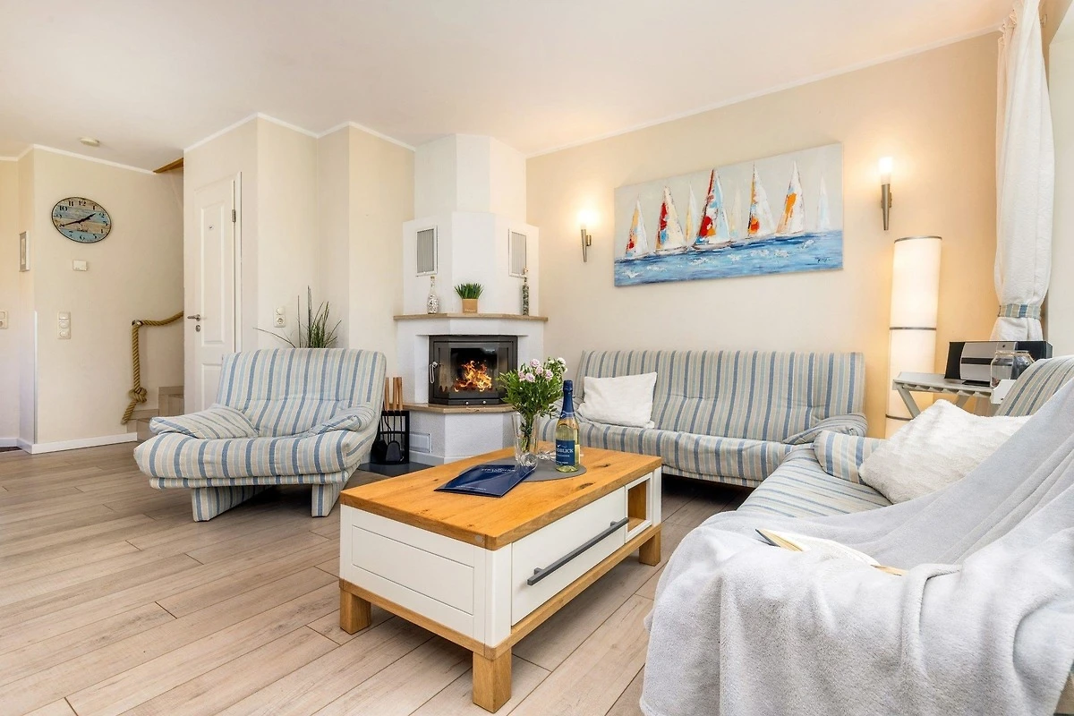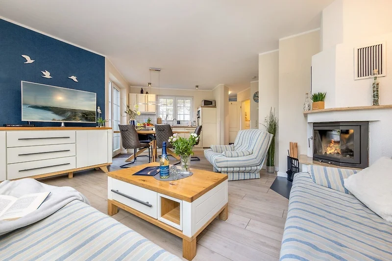 Im Wohnbereich sorgt ein Kamin für behagliche Stimmung, während die HiFi-Anlage und der TV für Unterhaltung sorgen. Die Wohnung ist allergikergeeignet und verfügt über Internet mit WLAN (8 MBit/s). Praktische Annehmlichkeiten wie Waschmaschine, Bügeleisen und Parkplatz runden das Angebot ab. Einladende Sessel, Fussbodenheizung und Brettspiele garantieren entspannte Stunden. Rauchmelder, Fliegengitter und Heizung sorgen für Sicherheit und Komfort.