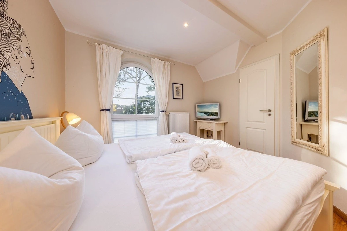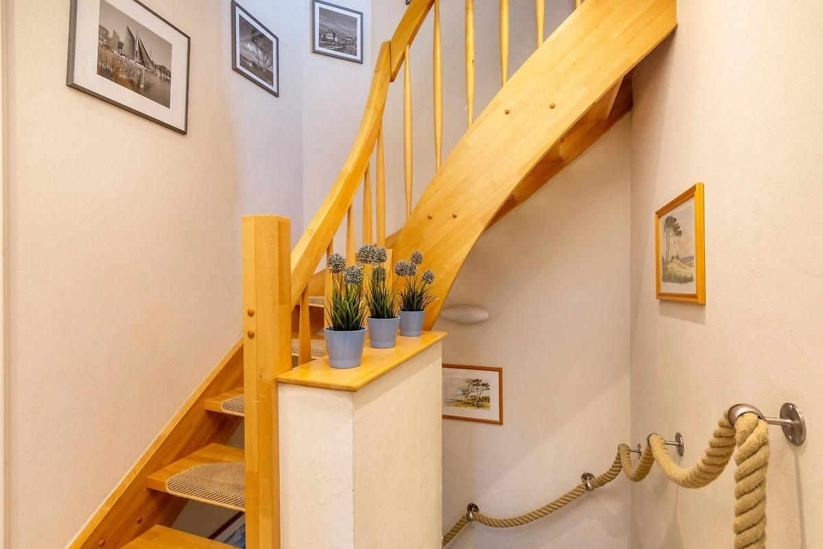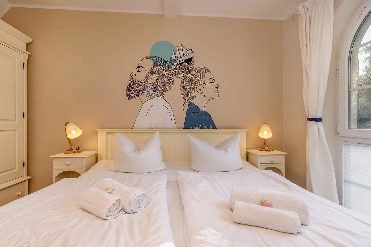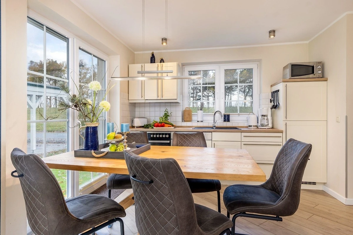 Die Ferienwohnung bietet einen komfortablen Rückzugsort mit drei durchdacht gestalteten Schlafzimmern, darunter zwei Doppelbetten und ein Einzelbett. Die offene Küche ist vollständig ausgestattet mit modernen Geräten, einschliesslich Geschirrspüler, Elektro-/Gasherd, Backofen, Mikrowelle und Kühlschrank. Der Essbereich mit Esstisch und ausreichend Geschirr sowie Besteck lädt zu gemeinsamen Mahlzeiten ein. Zwei Badezimmer, eines davon mit bodengleicher Dusche, gewährleisten Komfort für alle Gäste.