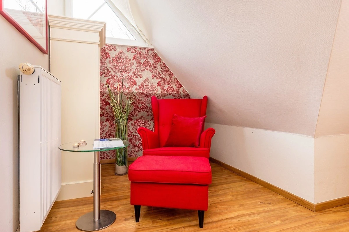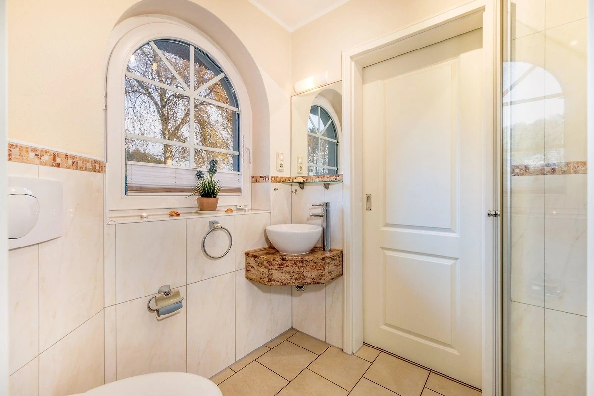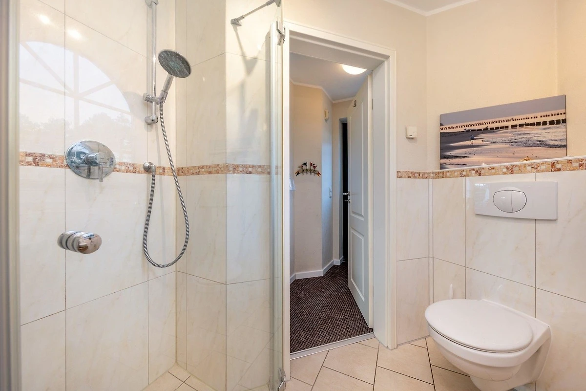 Die Ferienwohnung befindet sich in einer idyllischen Lage im charmanten Ort Zingst, unweit der Ostseeküste. In nur 1 Kilometer Entfernung lädt der feinsandige Strand zum Sonnenbaden und Wassersport ein. Die reizvolle Umgebung bietet zahlreiche Möglichkeiten für Outdoor-Aktivitäten wie Radfahren, Walking und Nordic Walking. Golfbegeisterte finden einen Golfplatz in etwa 3 Kilometern, während Reiter sich über eine nahegelegen Reitschule freuen können. Für entspannende Stunden gibt es Spa-Angebote, Massagen und Kosmetikbehandlungen in der Umgebung. Familien mit Kindern können sich auf Spielplätze und Minigolf freuen. Der Ortskern mit Einkaufsmöglichkeiten und Restaurants befindet sich nur 500 Meter entfernt. Bootsausflüge und Segelmöglichkeiten sind ebenfalls in der Nähe verfügbar, sodass für jeden Geschmack etwas dabei ist. Die Erreichbarkeit erfolgt bequem mit dem Auto oder öffentlichen Verkehrsmitteln.