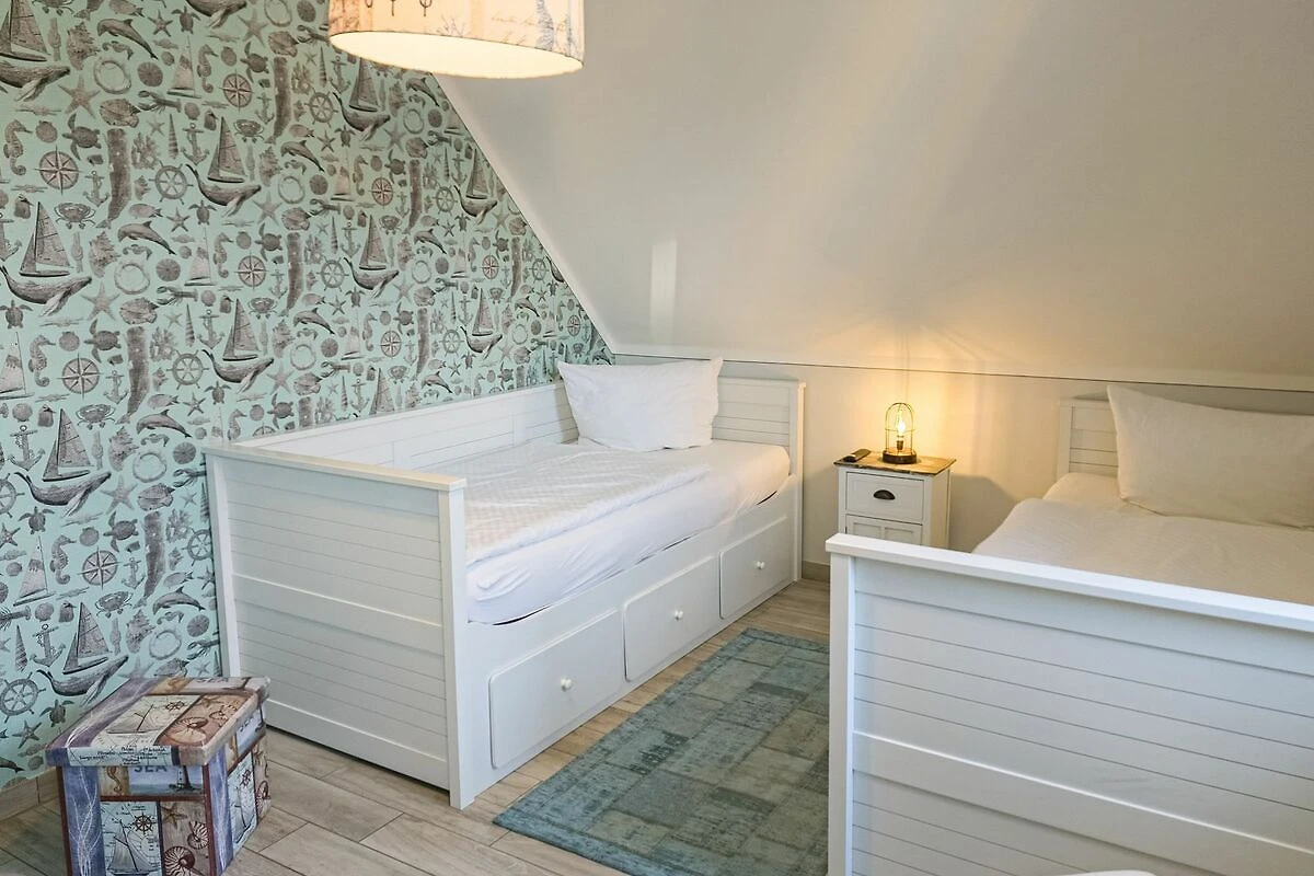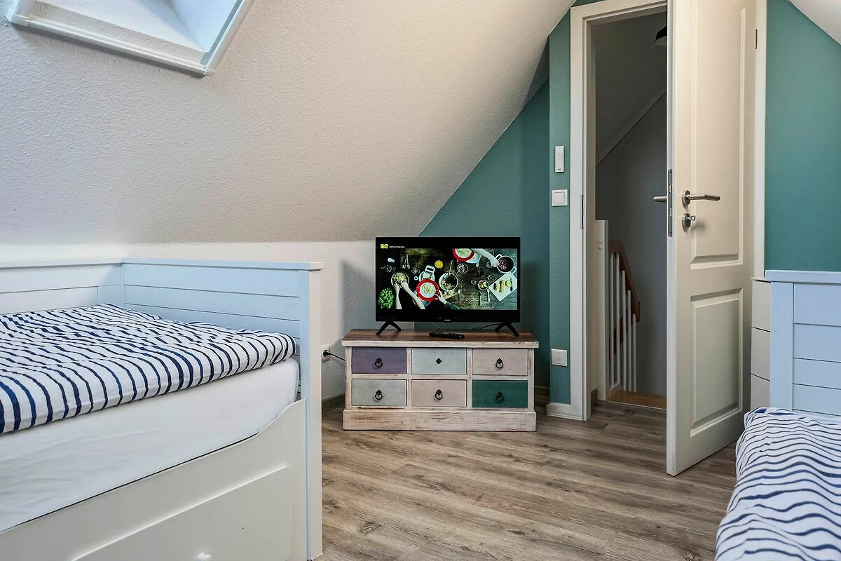 • Vier Schlafzimmer: zwei mit Doppelbetten und TV, zwei mit Einzelbetten