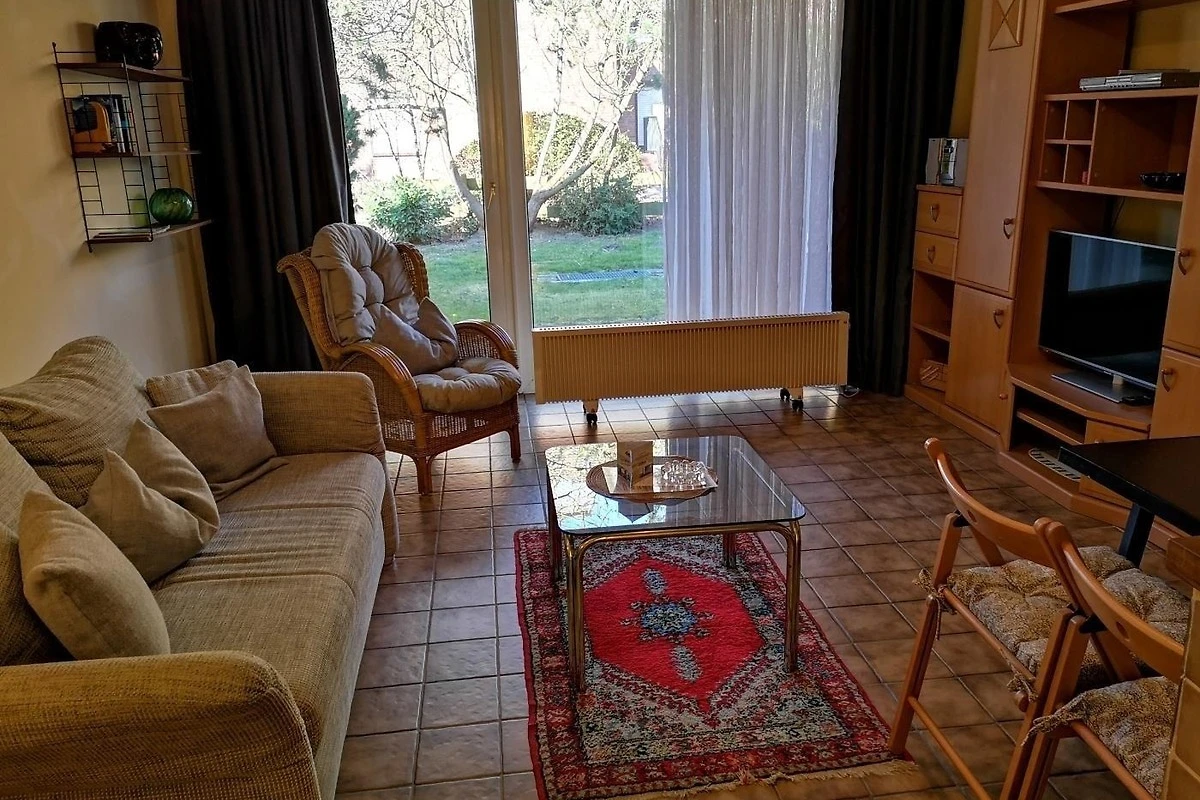 Die Ferienwohnung liegt ca. 200m vom Strand entfernt. Die Ferienwohnung besteht aus: Wohnschlafraum mit Doppelbettcouch, Küchenzeile, Essecke, Farb-TV, Terrasse, Schlafzimmer mit Doppelbett, Dusche, WC. Lage: An der Aue 4d, Parterre, Tiefgaragenplatz Nr. 02