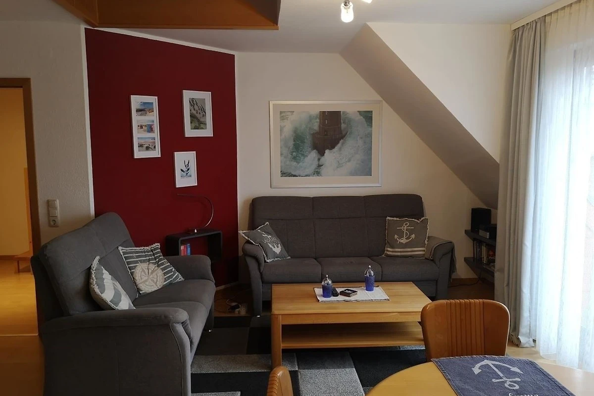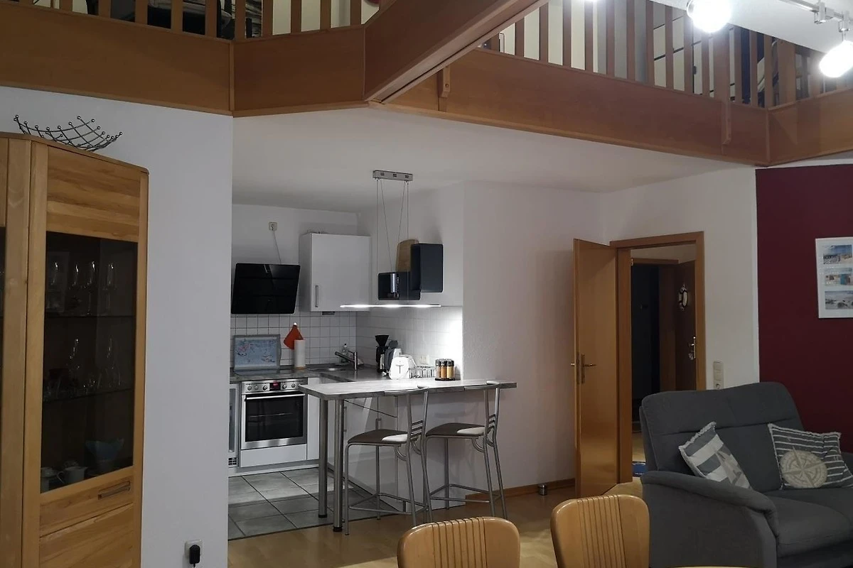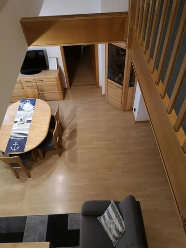 Die Maisonette-Ferienwohnung befindet sich im 2. OG über 2 Etagen. Die Wohnung besteht aus einem Wohnzimmer mit Ecksofa, einem Flach-TV für die Unterhaltung, einer Küchenzeile mit Geschirrspüler und allen weiteren Helferchen für die Zubereitung von leckeren Mahlzeiten, einer Essecke, einem Schlafzimmer mit Doppelbett und TV sowie einem Schlafzimmer mit 2 Einzelbetten (offene Galerie), einer Dusche mit WC und einem Balkon mit Sitzmöbeln.