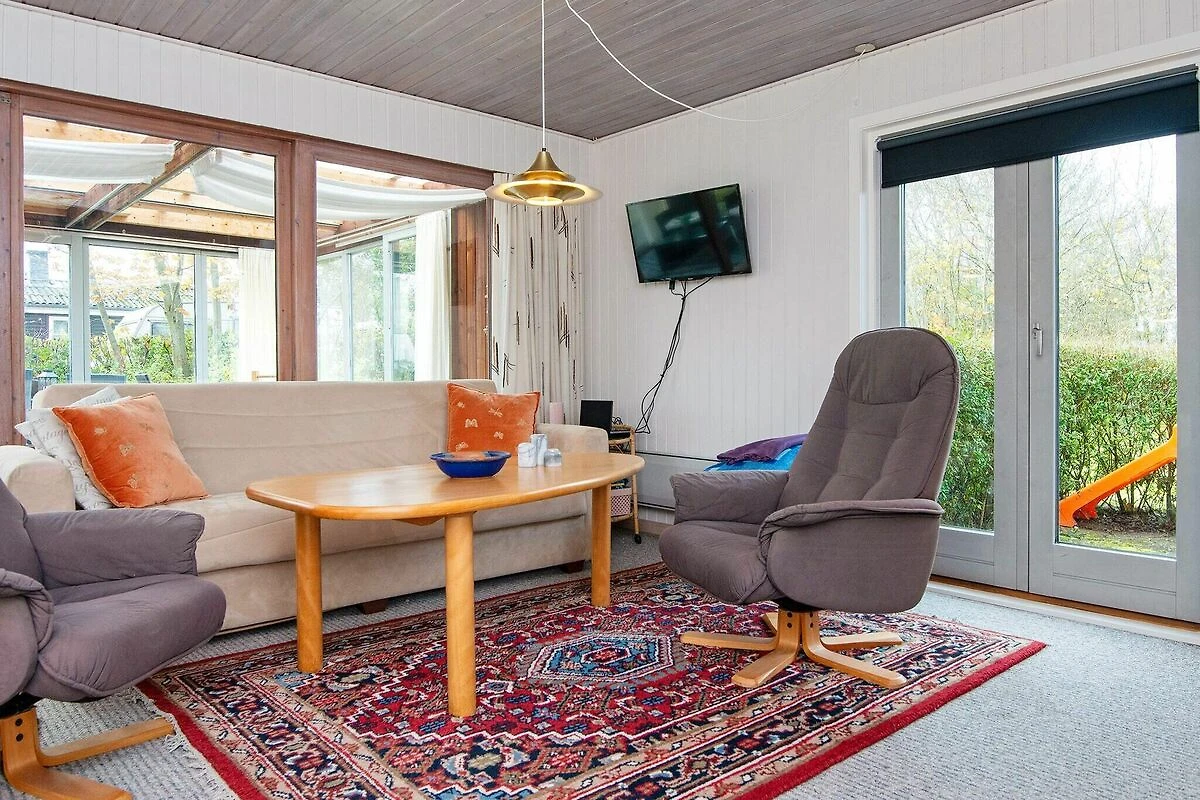 Küche(Kochherd(elektrisch), Kaffeemaschine, Mikrowelle, Kühlschrank(+ Gefrierfach), Tiefkühlschrank(60-99L)), Wohn-/Schlafzimmer(TV(dänische Fernsehsender), DVD-Spieler), Schlafzimmer(Doppelbett), Schlafzimmer(Einzelbett), Schlafzimmer(Einzelbett, Doppelbett), Badezimmer(Waschbecken, Dusche, Toilette, Waschmaschine), Heizung(elektrisch), Terrasse, Gartenmöbel, Luft-Luft-Wärmepumpe