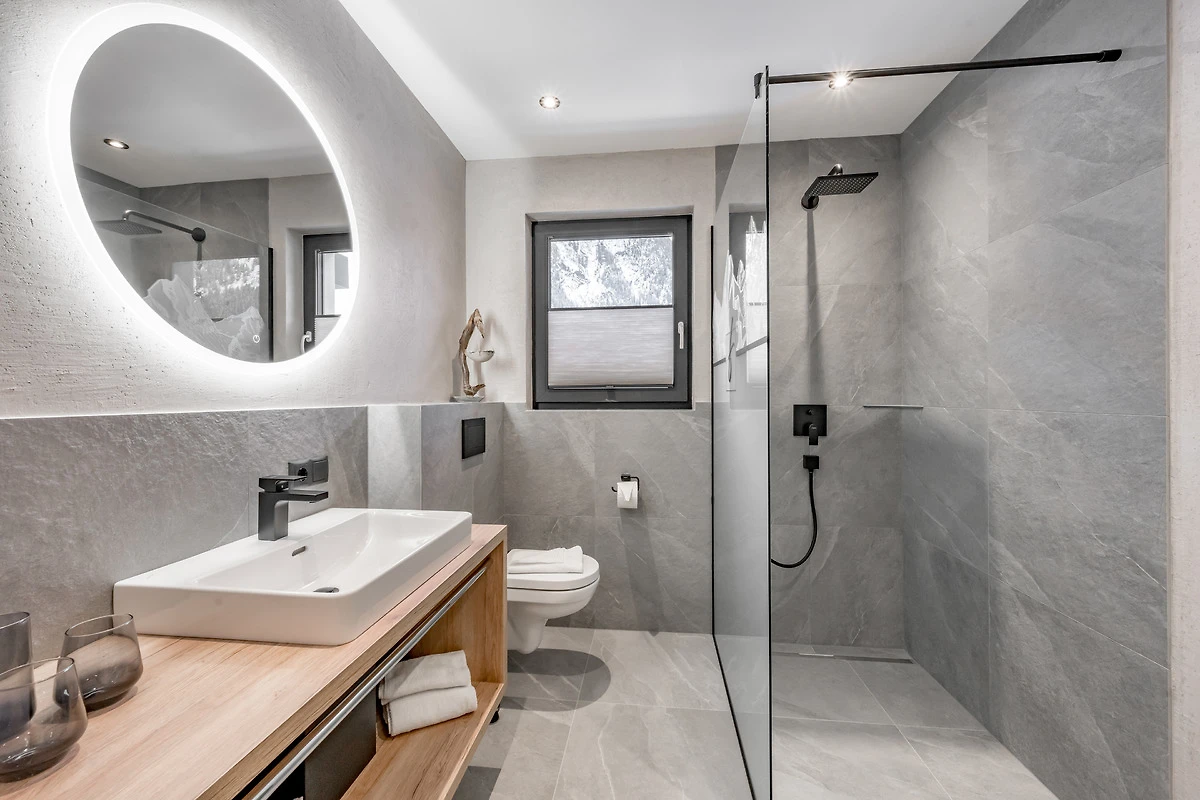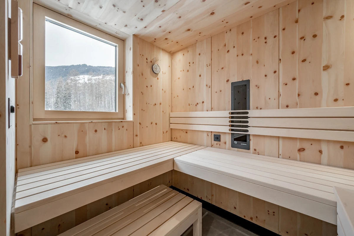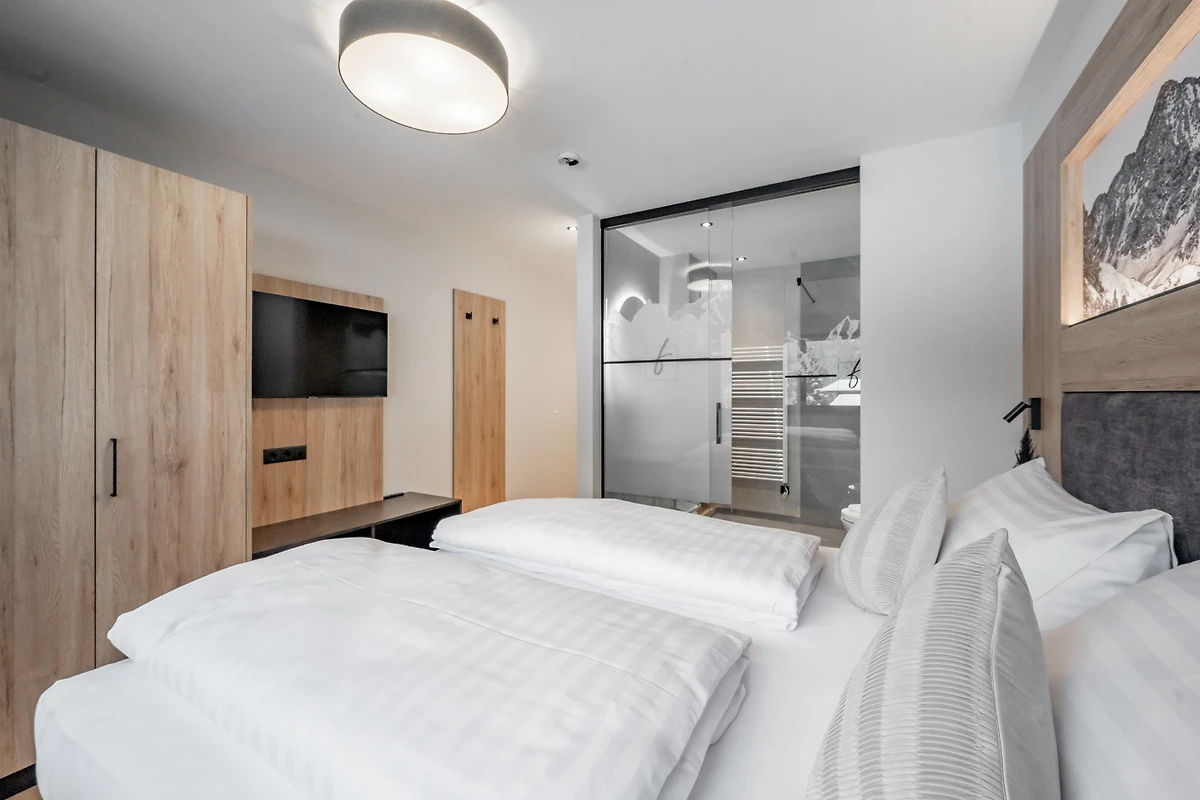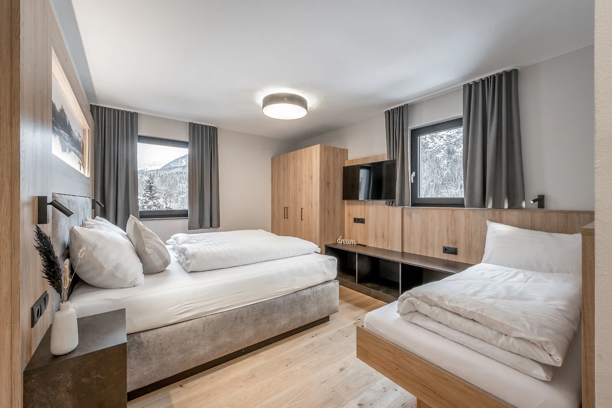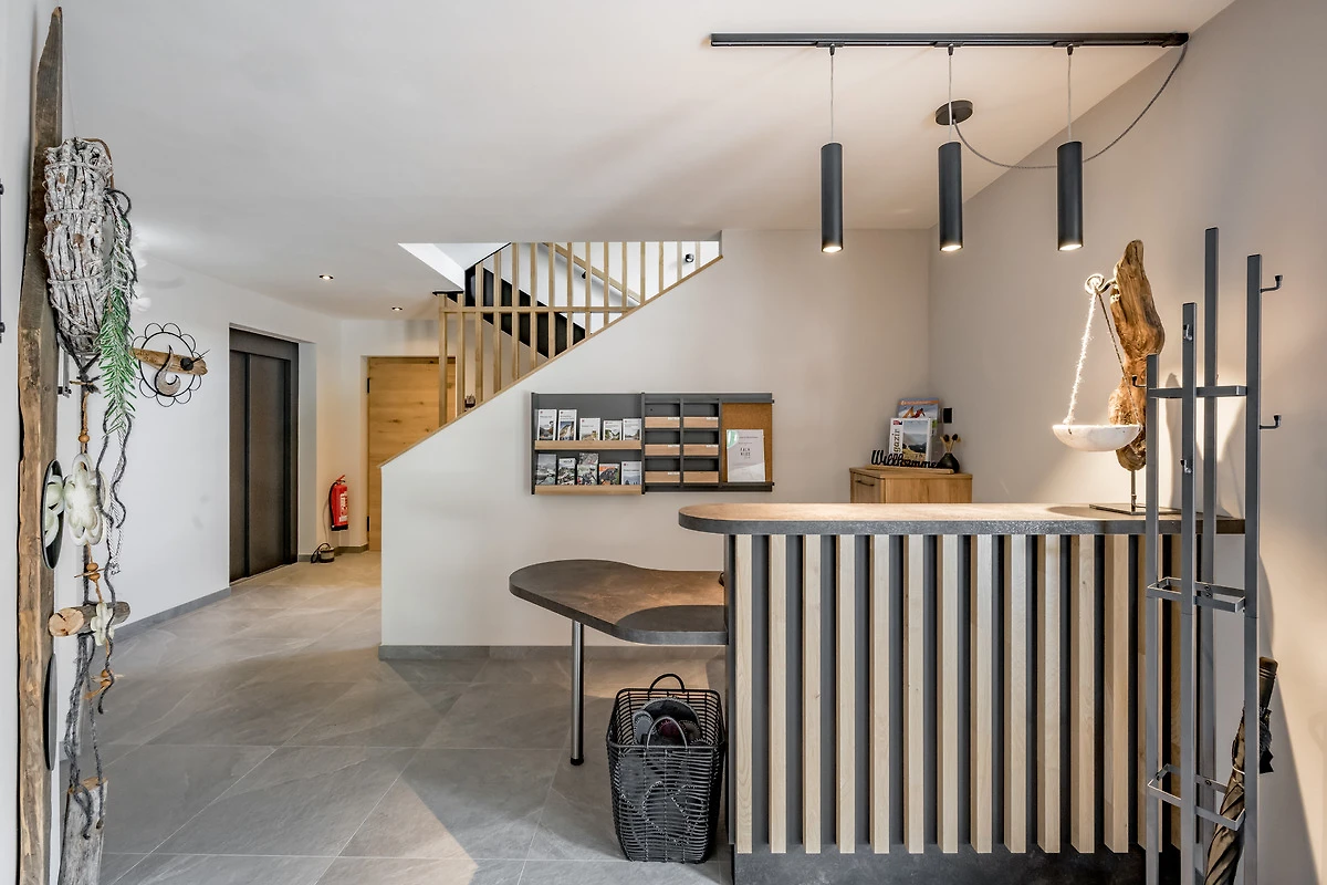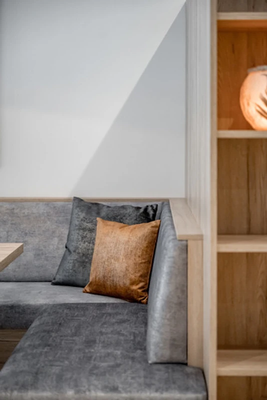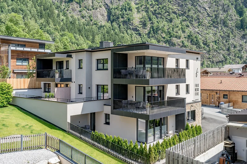 Unsere Apartments № FIVE in Oetz im Ötztal befindet sich im zweiten Obergeschoss und ist einfach über den Personenaufzug zu erreichen. Es begeistert mit sonnigem, offenem Wohn-Ess-Kochbereich und voll ausgestatteter Küche inkl. ausziehbarer Couch und einer direkt an den Wohnbereich angrenzender Zirbenholz-Sauna mit integriertem Infrarotstrahler. Das Apartment bietet zwei Schlafzimmer, eines davon ist ausgestattet mit einem Doppel-Boxspringbett, das zweite mit einem Doppel-Boxspringbett und zusätzlich einem Einzelbett. Die Schlafzimmer verfügen jeweils über ein grosszügiges, modernes Badezimmer mit Dusche & WC.