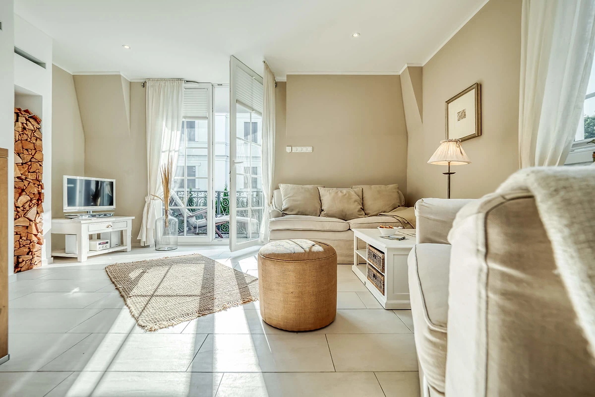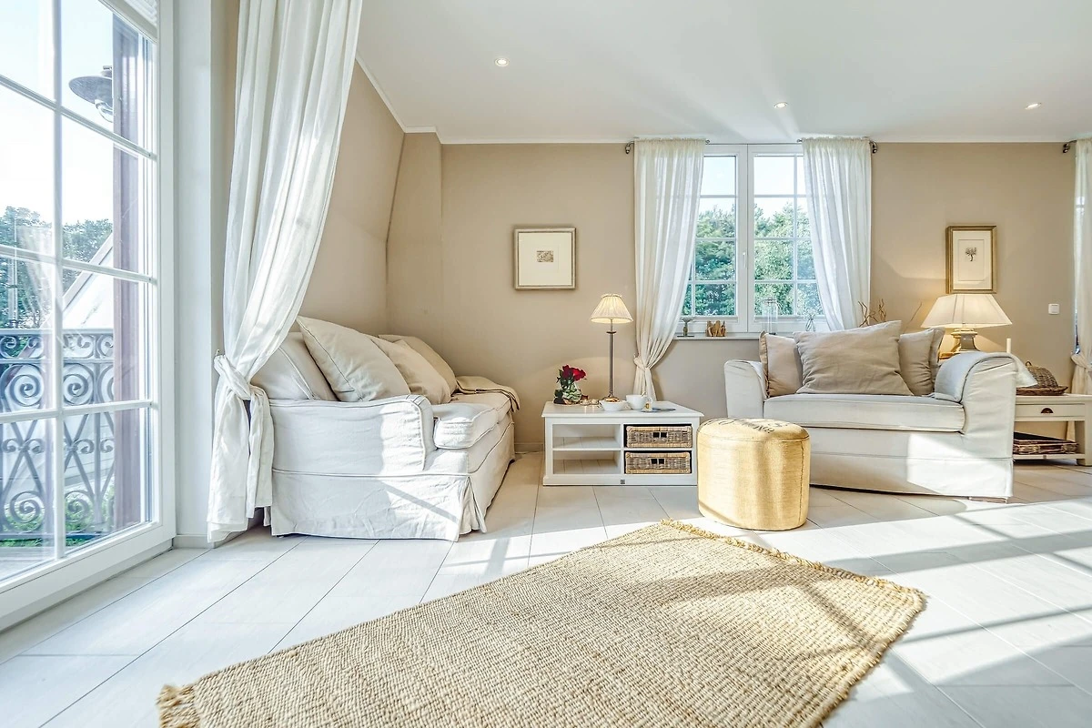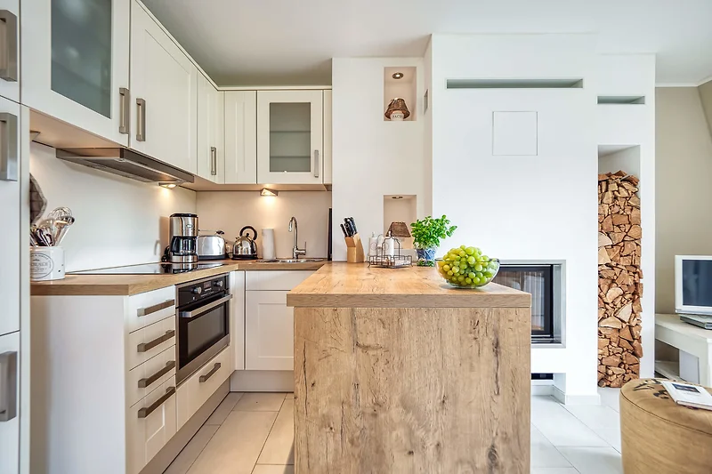 Die Ferienwohnung " Wieck " ist auf 54 qm mit viel Liebe zum Detail hochwertig und komfortabel ausgestattet. Sie bietet in der offenen Küche hochwertige Geräte und lädt zum gemeinsamen kochen und geniessen ein. Auch an die häuslichen Dinge wurde gedacht , wie. Waschmaschine , Bügelbrett , Wäscheständer u. v. m. zur kostenlosen Nutzung . Die Balkons ( Ausrichtung Norden und Südwest ) sind mit Möbeln zum liegen und sitzen ausgestattet und lädt ein den Sonnenuntergang bei einem Glas Wein zu beobachten.