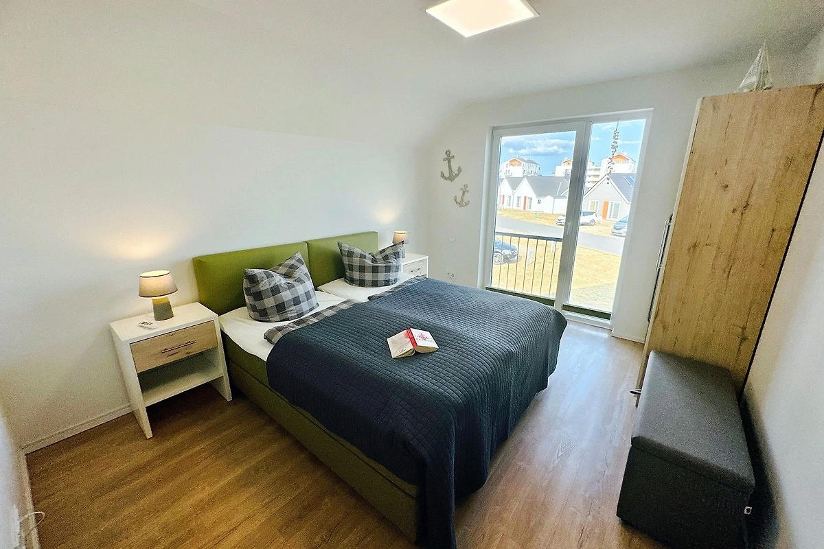 Grosse Balkone mit Hafenblick: Geniessen Sie den wunderbaren Blick auf den Hafen und die Ostsee von den beiden Balkonen der Räuberhöhle. Ein überdachter Balkon mit einer gemütlichen Räuberbank lädt zum Verweilen und Entspannen ein. Zusätzlich bietet diese Ferienwohnung eine besondere Ausstattung für alle Grillfreunde: Ein Weber Elektrogrill steht Ihnen zur Verfügung, um kulinarische Köstlichkeiten zuzubereiten und gesellige Grillabende mit Freunden oder Familie zu verbringen. Keine Sorge um die nötige Ausstattung, denn auch gemütliche Balkonmöbel sind vorhanden, um das Ambiente perfekt zu gestalten und das Freiluft-Essen noch angenehmer zu gestalten.