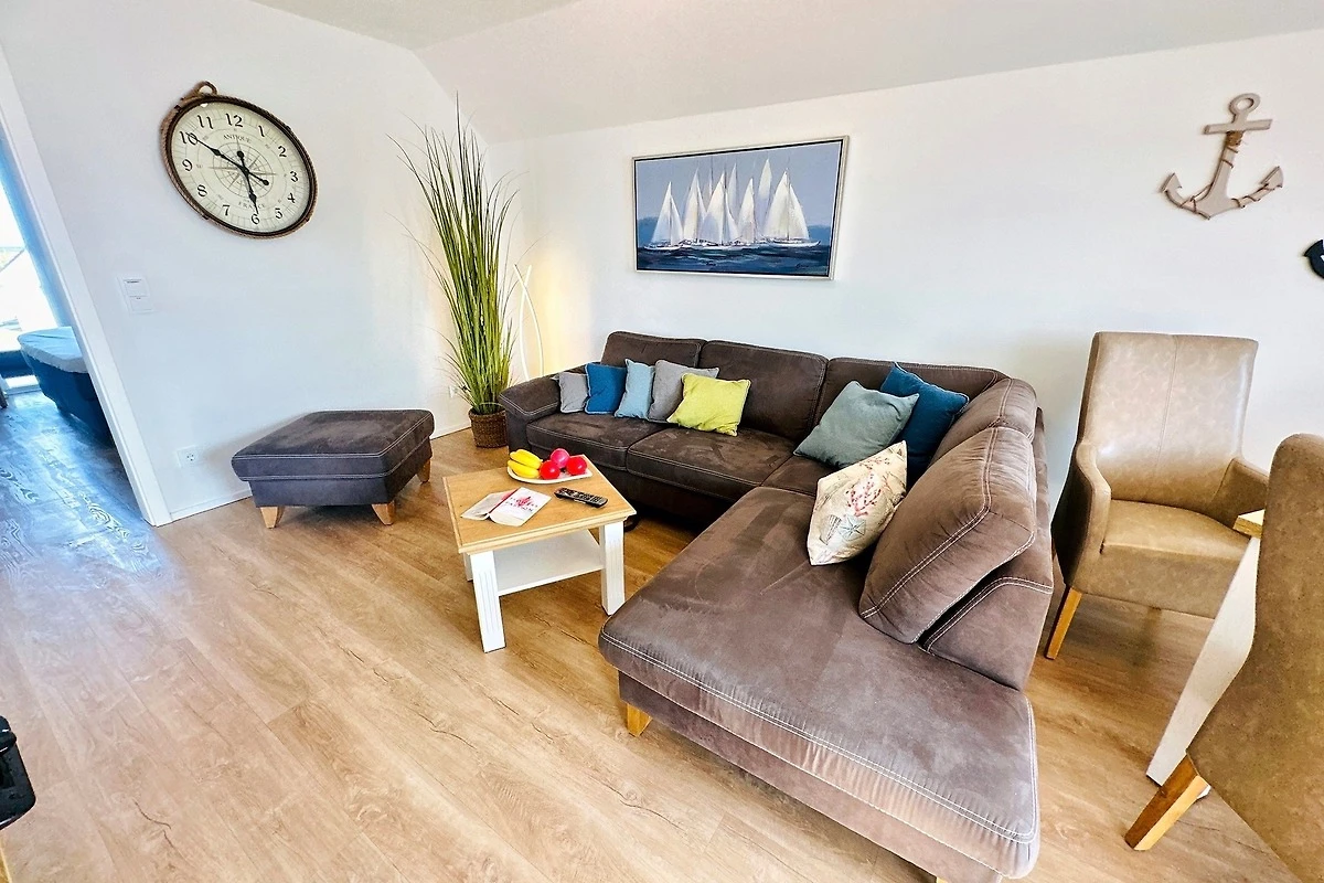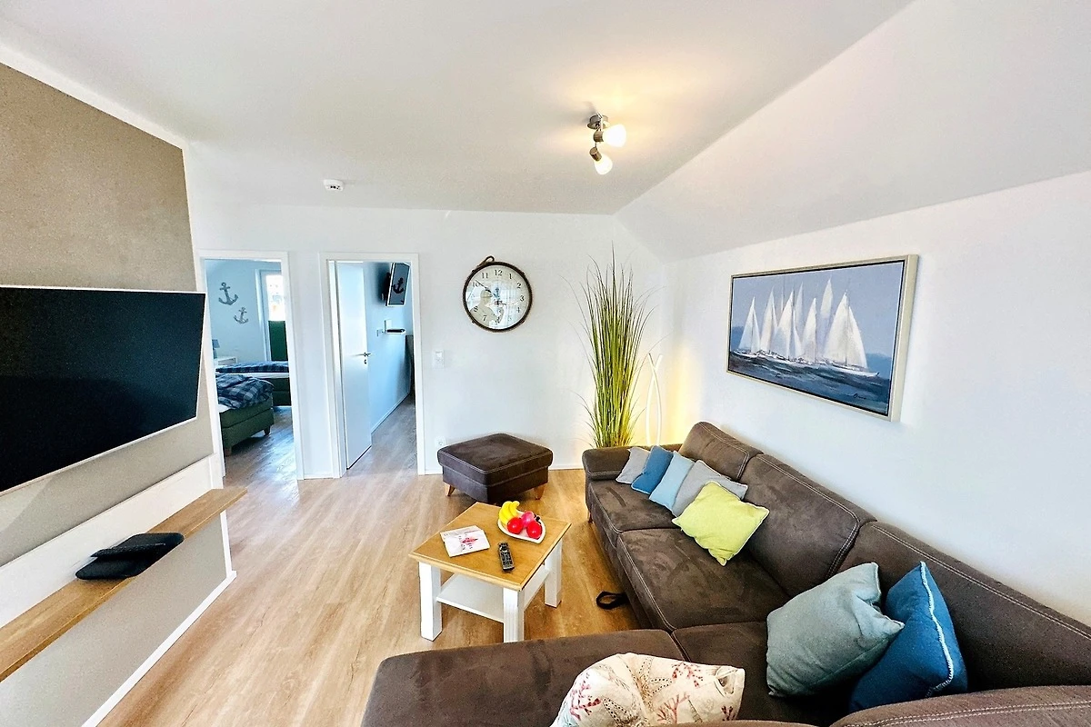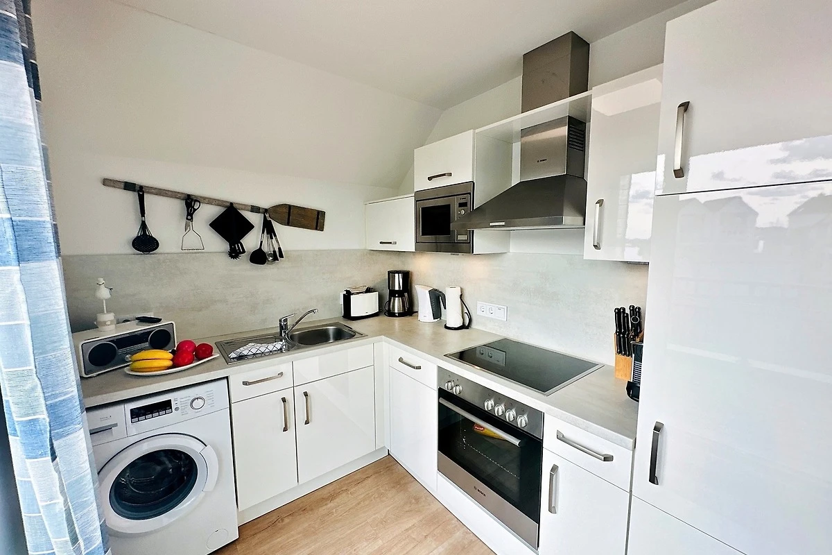 Ausstattung und Extras: In der Ferienwohnung finden Sie eine voll ausgestattete Wohnküche, eine Waschmaschine, eine Spülmaschine, ein Bügeleisen und viele weitere Annehmlichkeiten vor. Verdunkelbare Plissees und Fliegengitter sorgen für eine angenehme Atmosphäre. Gesellschaftsspiele stehen für gemeinsame Unterhaltung bereit.