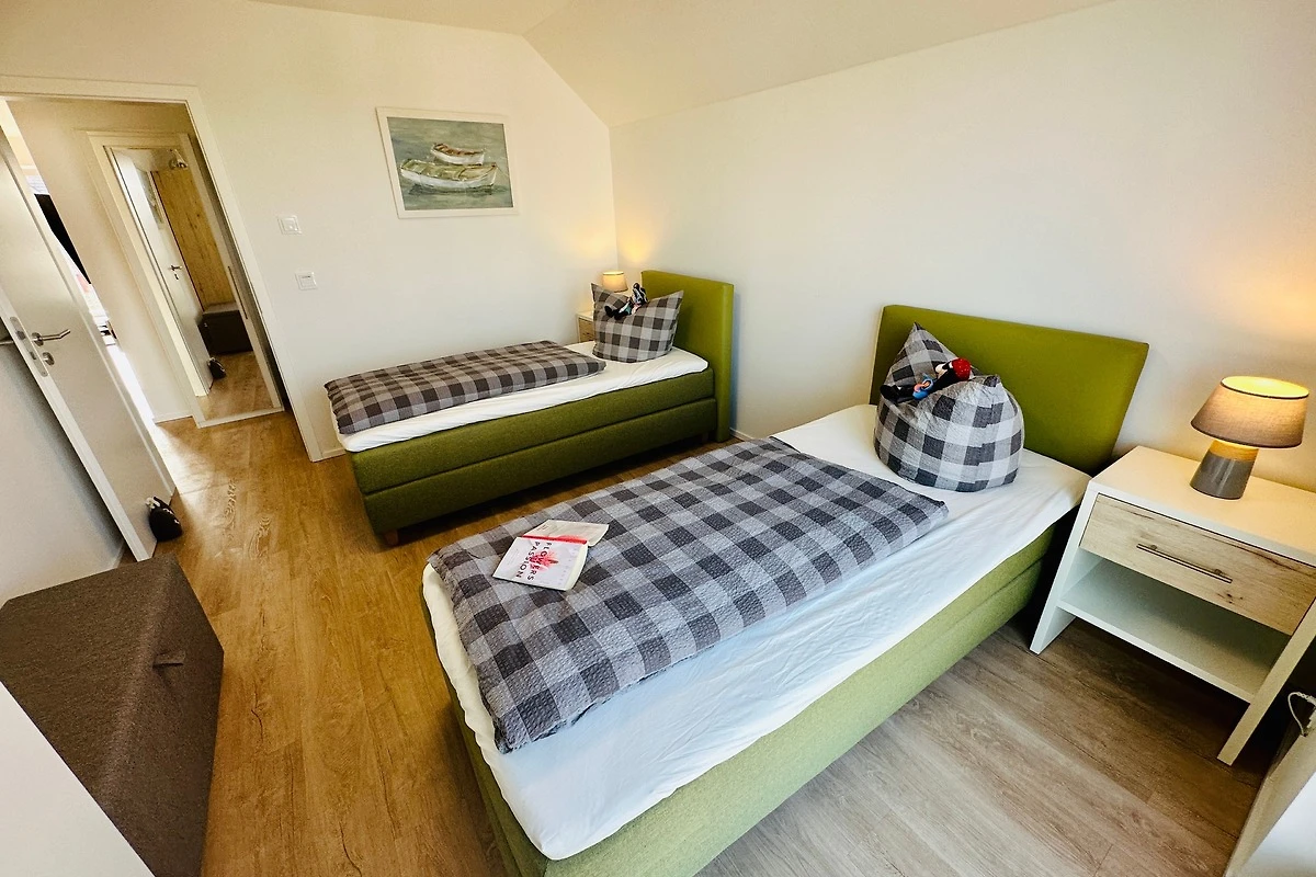 Komfortables Wohnen mit vielen Annehmlichkeiten: In der RÄUBERHÖHLE finden Sie alles für eine erholsame Nachtruhe. Das Masterbedroom verfügt über ein gemütliches Boxspringdoppelbett, das Ihnen optimalen Komfort bietet. Geniessen Sie eine angenehme Nachtruhe und entspannen Sie sich beim Fernsehen, direkt vom Bett aus. Das zweite Schlafzimmer ist mit zwei Einzelboxspringbetten ausgestattet, die bei ausreichender Harmonie zusammengeschoben werden können. Hier haben Sie die Flexibilität, je nach Ihren Bedürfnissen die Schlafgelegenheiten anzupassen. Selbstverständlich ich dieses ebenfalls mit einem Smart TV ausgestattet.