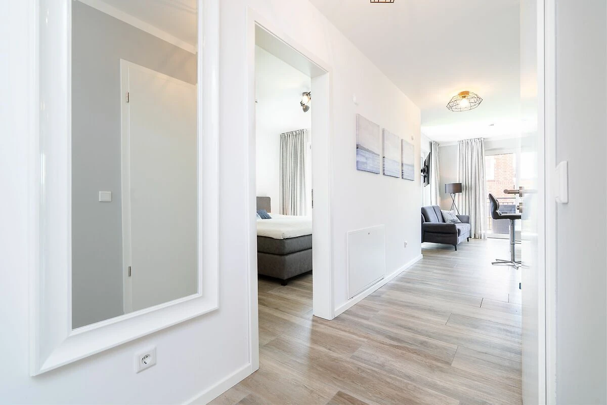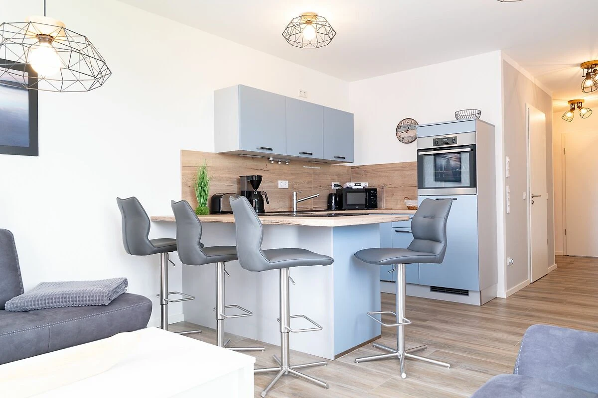 Ankommen und MeerZeit genießen! Herzlich Willkommen in der 3-Raum-Ferienwohnung „MeerZeit Nr.3“ in exklusiver Lage von Neustadt in Holstein. Die ca. 65 m2 große, hochwertig ausgestattete Ferienwohnung liegt im EG eines in 2023 erbauten Mehrparteienhauses und ist in fußläufiger Entfernung zur „ancora Marina“, dem größten privaten Yachthafen an der Ostsee. Die Wohnung verfügt über einen schönen kombinierten Wohn- und Essbereich mit Zugang zum Balkon, sowie 2 Schlafräumen. Die mit Backofen, Herd und Geschirrspüler voll ausgestattete, moderne Küche ist in den kombinierten Wohn- und Essbereich integriert. Hier kann man den Tag bei einem Glas Wein oder gemeinsamen Spiele- oder TV-Abenden ausklingen lassen. Beide Schlafräume sind mit einem bequemen Boxspringbett eingerichtet, eines verfügt zudem noch über ein TV. Das hochwertige Bad ist mit einer begehbaren Dusche ausgestattet. Ein Parkplatz in der hauseigenen Tiefgarage ist inklusive. Stellplatz für Ihre E-Bikes auf Anfrage verfügbar.