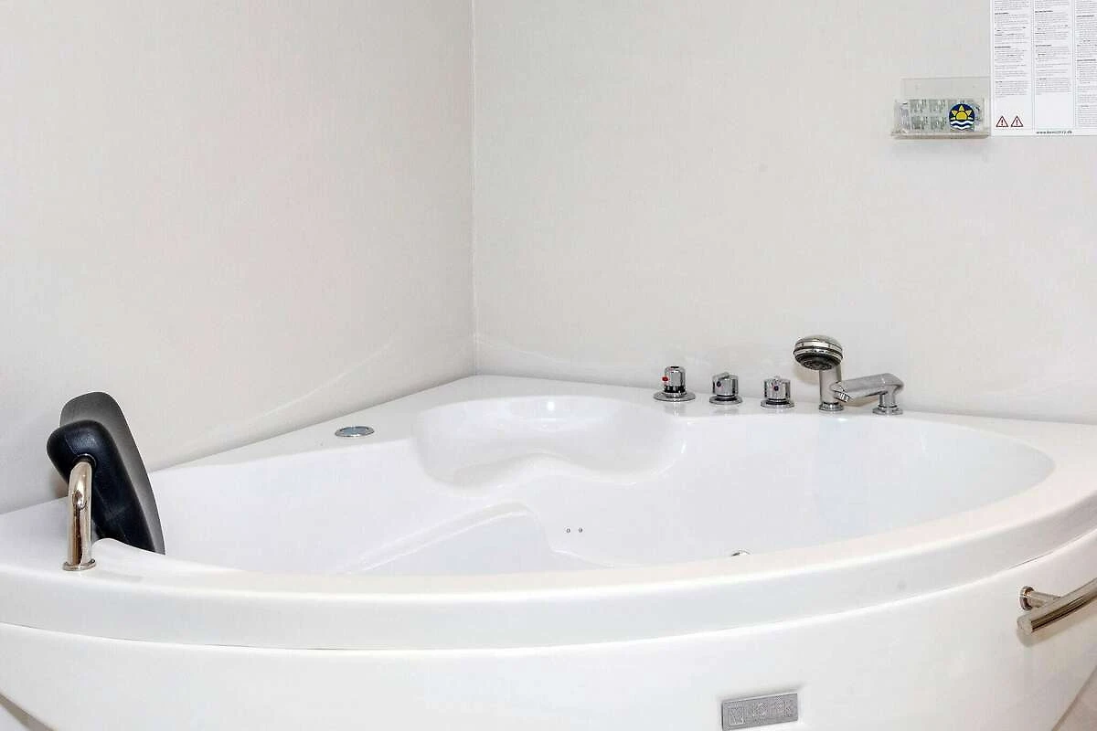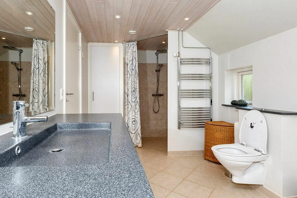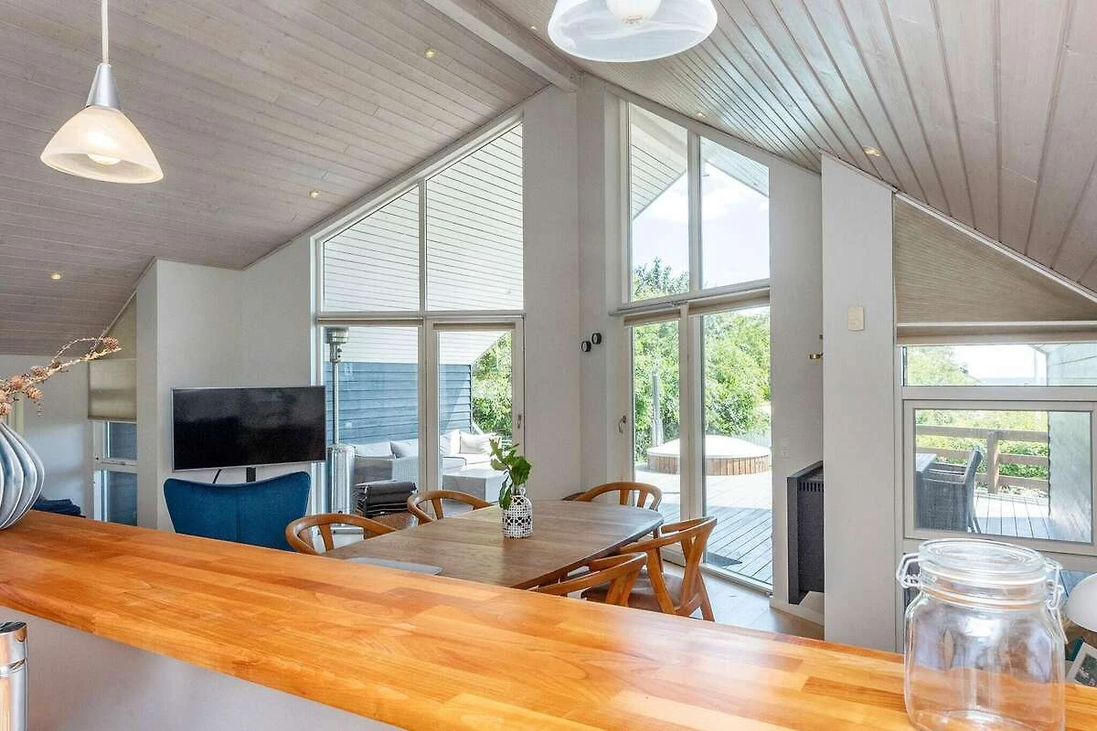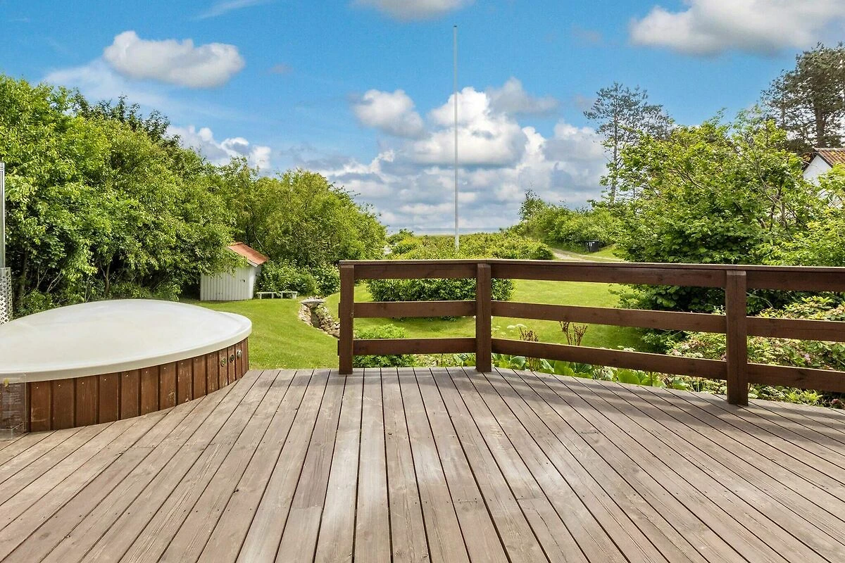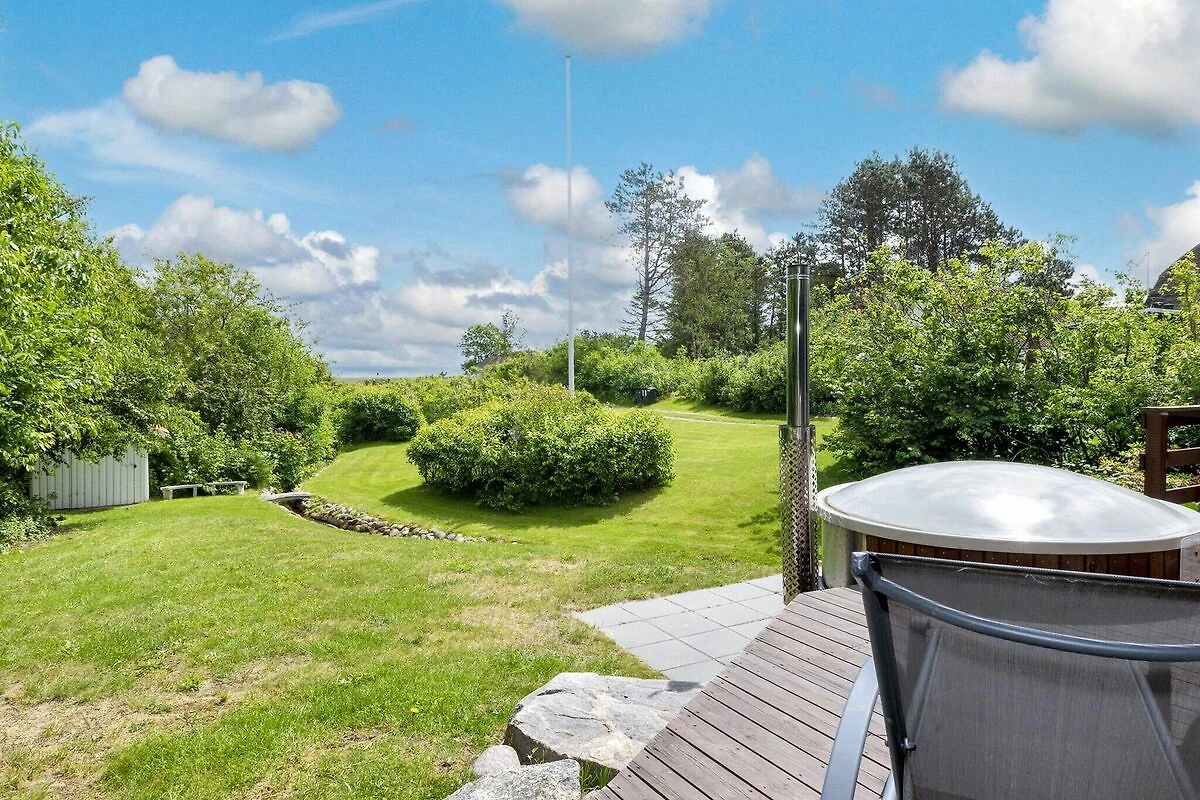 Ferienhaus mit Meerblick, Whirlpool innen und Badezuber außen. Liegt auf einem wunderschönen Grundstück bei Øster Hurup. Im Haus großes, helles Wohnzimmer, das in offener Verbindung zur Küche und zum guten Essbereich steht. Es gibt große Fenster zum Wasser hin sowie Zugang zu einer großen, teilweise überdachten Terrasse mit Gartenmöbeln, Loungemobiliar und Badezuber. Ein Schlafzimmer mit Doppelbett, zweites Zimmer mit einer doppelten Schlafcouch, außerdem ein Hems oben auf dem Dachboden mit zwei Matratzen. Großes Badezimmer mit Whirlpool, Dusche und WC. Separater Annex nebenan auf dem Grundstück mit Wohnküche, Schlafzimmer mit Doppelbett und Badezimmer mit Dusche und WC. Es gibt einen Fernseher mit Chromecast zum Streamen, aber keine Fernsehkanäle. Das Ferienhaus steht auf einem fantastischen Grundstück mit vielen gemütlichen Ecken und viel Platz für Aktivitäten an der frischen Luft. Keine Vermietung an Jugendgruppen erwünscht!