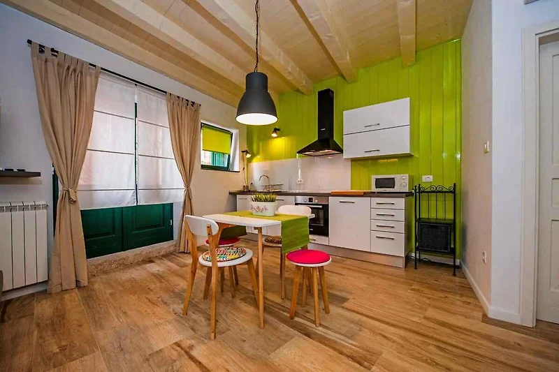 Das Studio befindet sich in einem Apartementhaus und ist modern eingerichtet. Das Grundstück liegt in belebter Umgebung, im Ortszentrum. Auch wegen der sonnigen Lage am Wasser ist das Domizil beliebt.