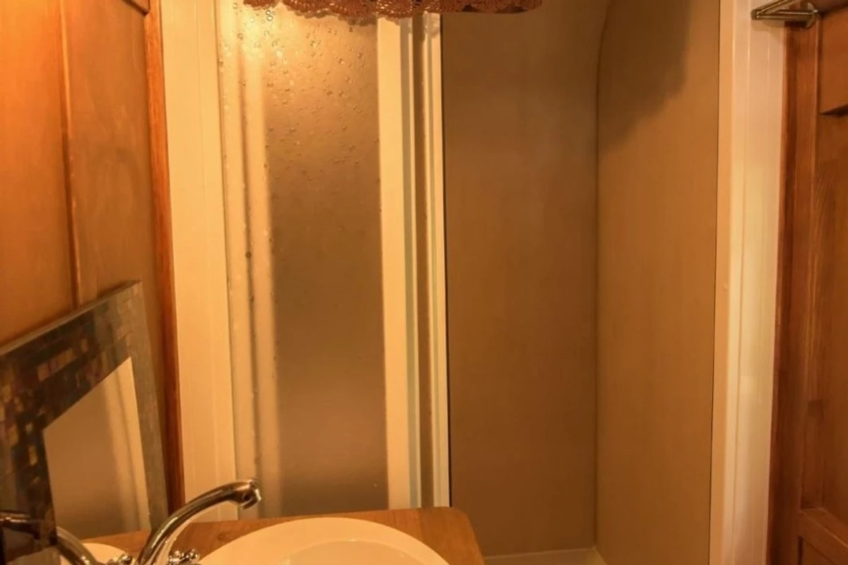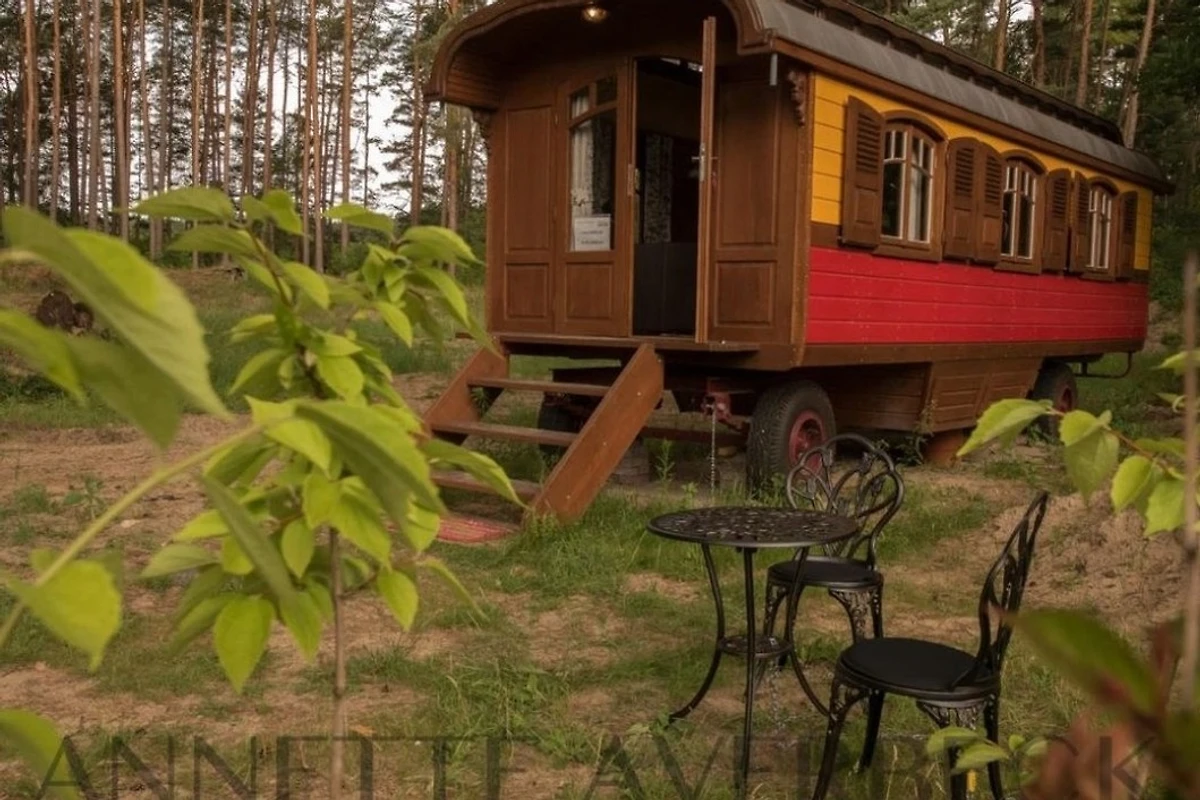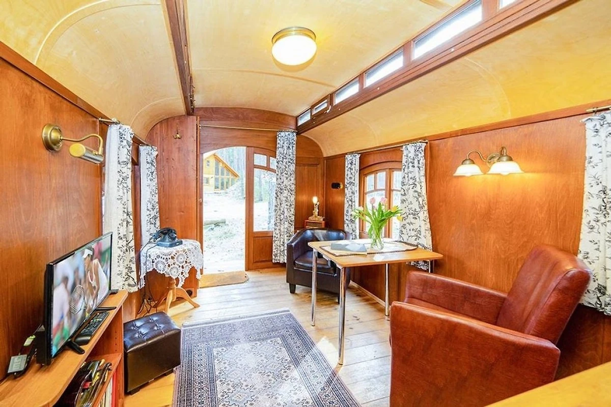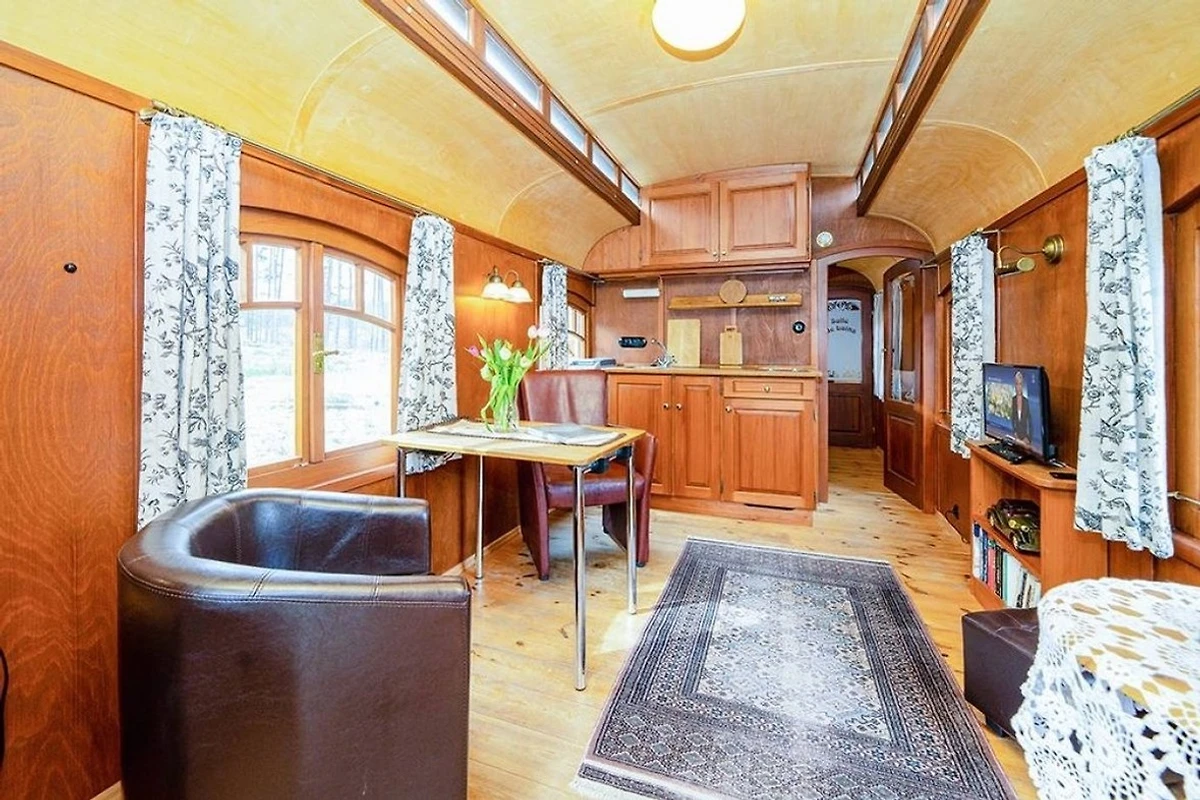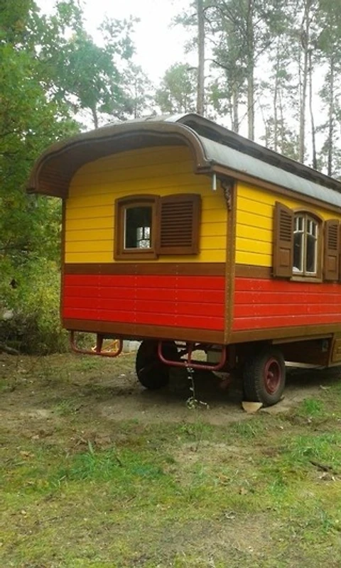 Es bietet sich an, mit Reisetaschen statt mit Hartschalenkoffer anzureisen. Am Platz liegen alle Medien an: Strom, Gas, Wasser, Abwasser, WLAN, TV. Auch für die Selbstversorgung ist alles da: Kühlschrank, Gaskocher, Wasserkocher, Toaster etc. Der Wagen steht mit drei weiteren Zirkuswagen auf einer rund 3.000 m² grossen wild-romantischen Waldlichtung, ein klarer Badesee nur 100 Meter weit entfernt. Vor dem Platz gibt es einen Parkplatz für Sie.