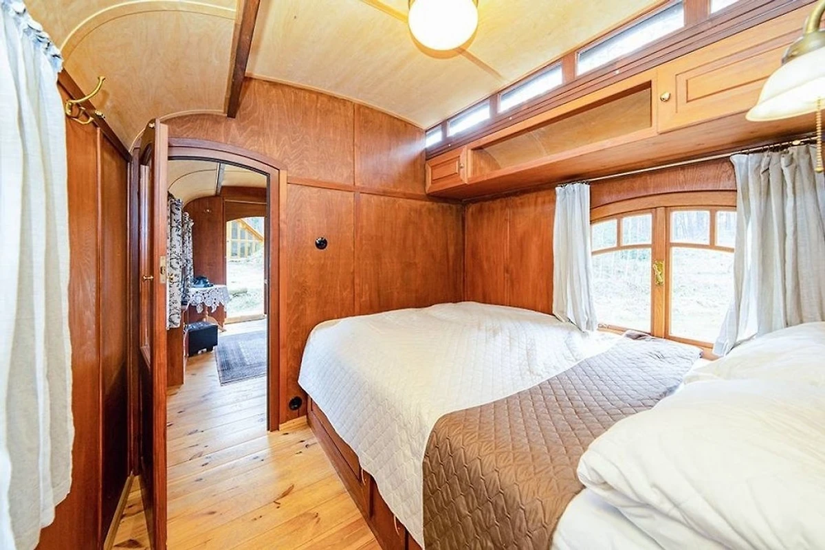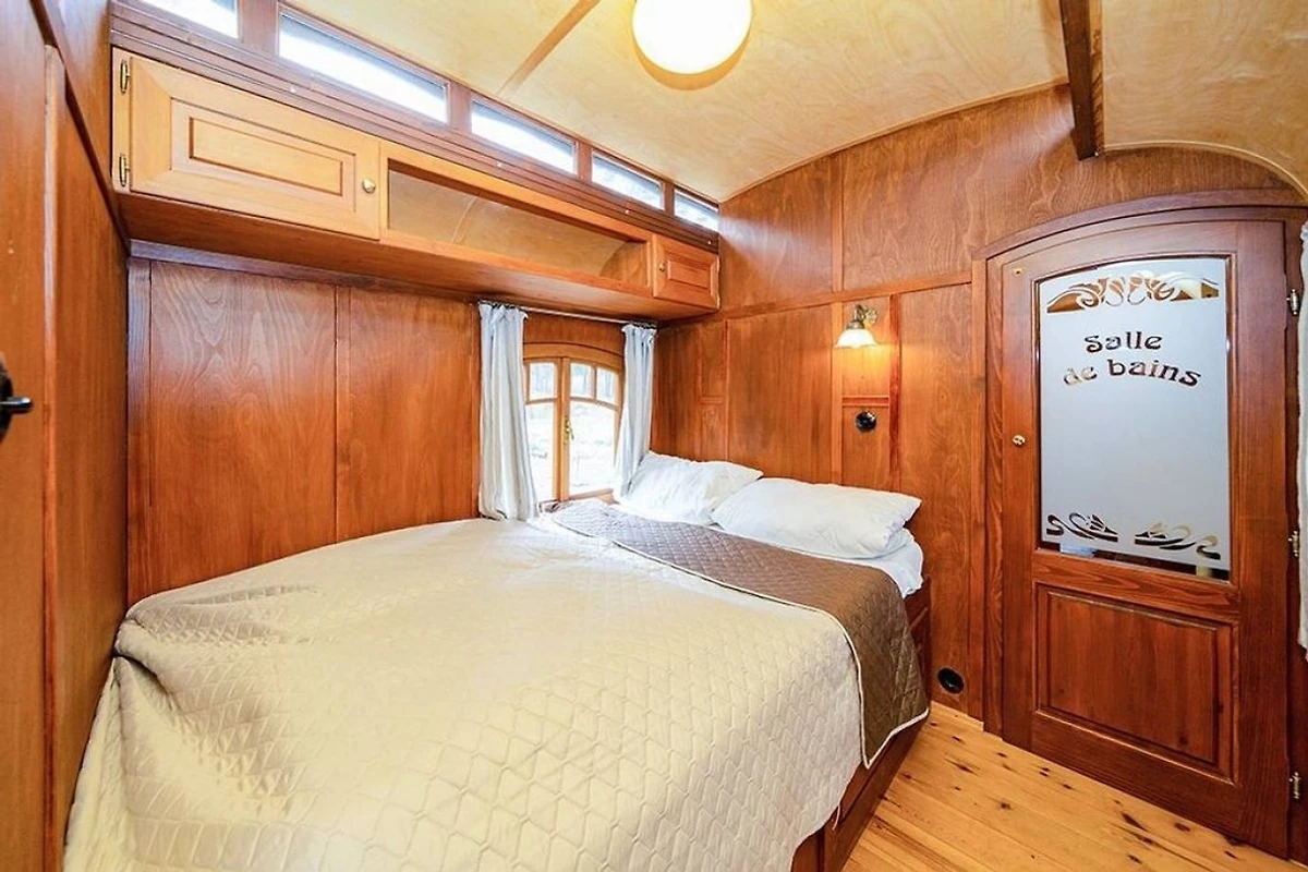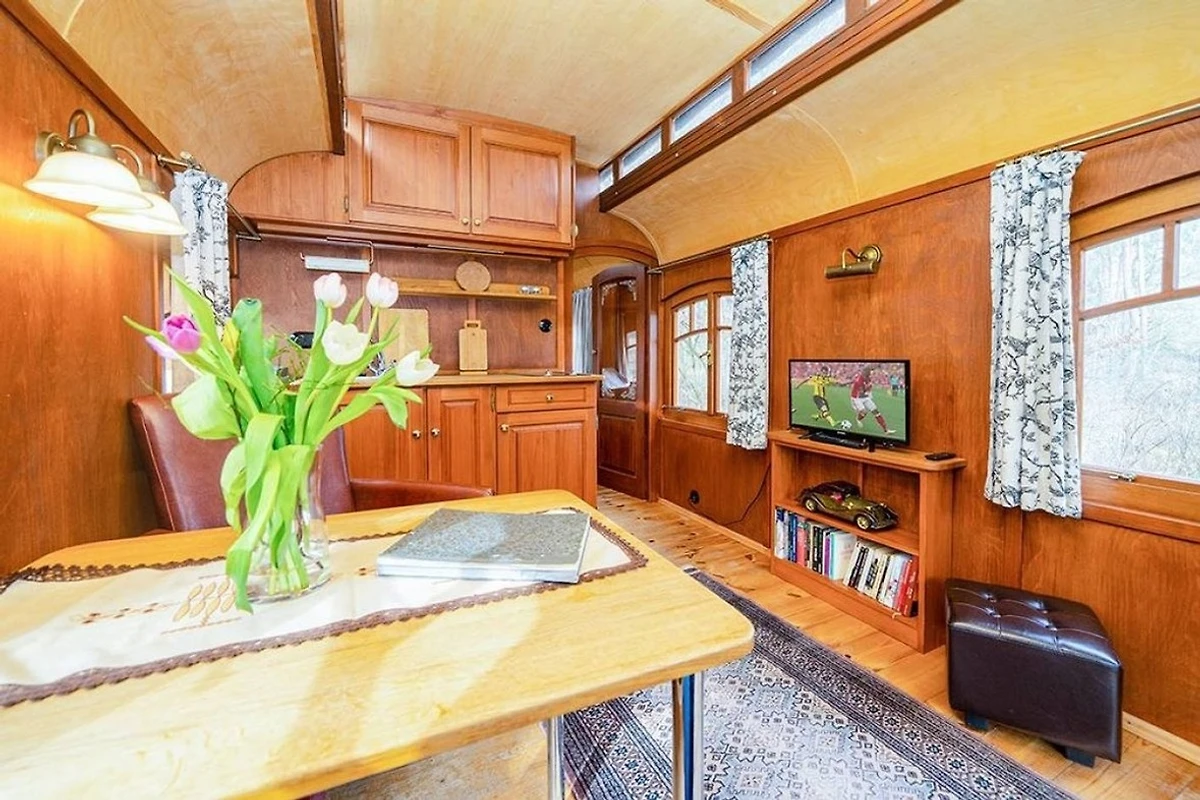 Klein, aber fein: Der Zirkuswagen Zigappo Directeur hat alles, was es braucht, auf kompakten 17 Quadratmetern untergebracht: ein Wohn-/Essbereich, davon durch Türen getrennt eine Schlafnische mit einem 200 x 140 cm breiten Bett sowie ein Bad mit Dusche, Waschbecken, WC. Stauraum gibt es über und unter dem Bett.