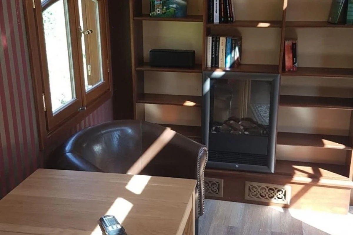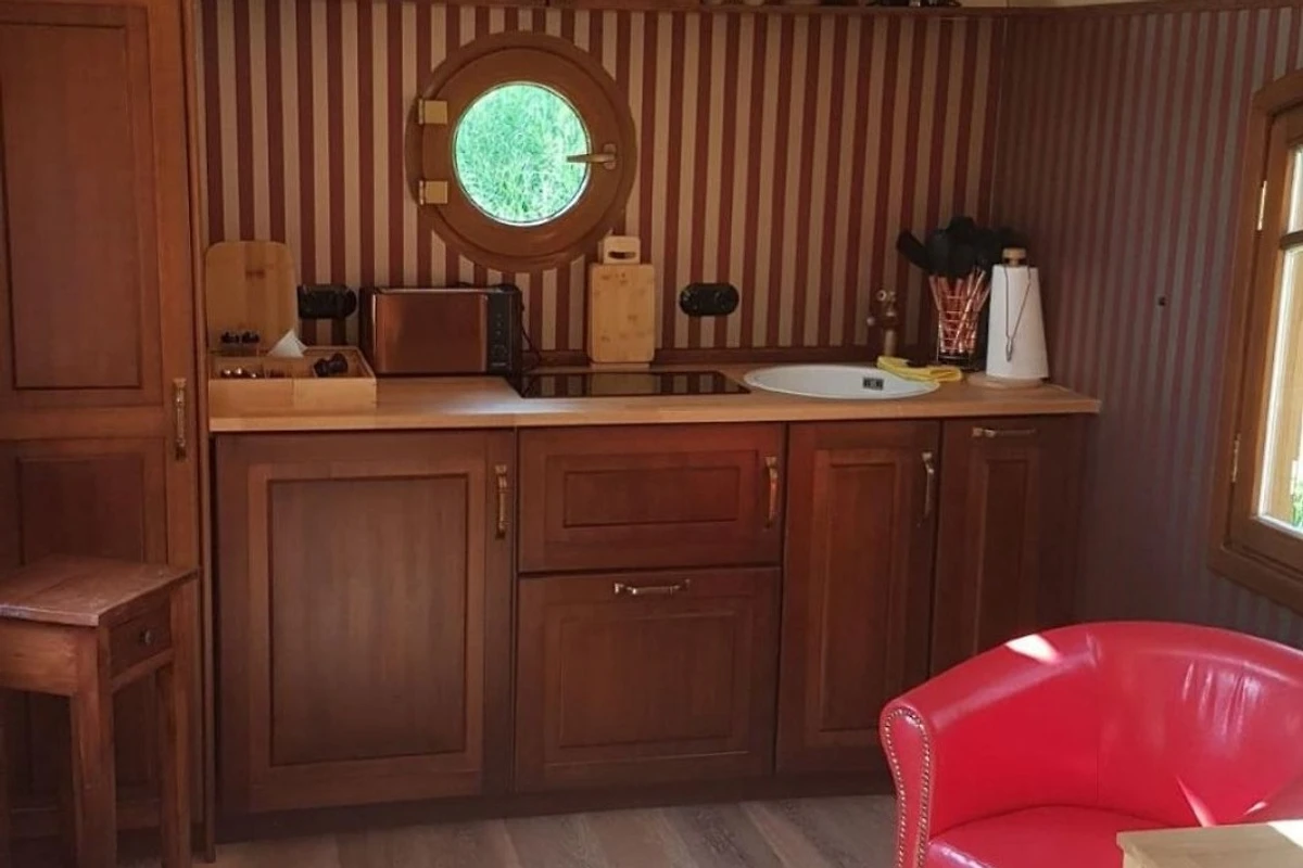 Dennoch verfügt der Wagen über moderne Technik wie Infrarotheizung, Warmwasseraufbereitung TV und WLAN usw.