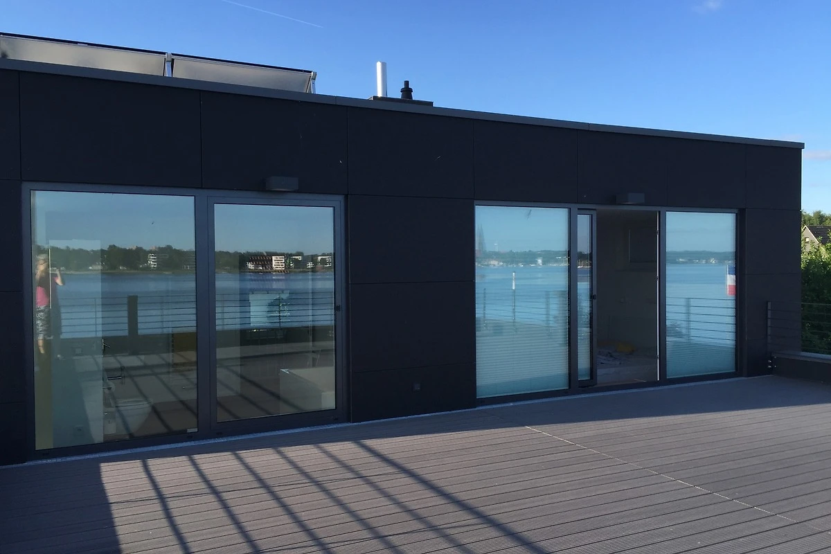 Ursprünglich im Jahr 1955 erbaut, erfuhr Ihr Fjordhaus Schleiwind im Jahr 1977 eine moderne Erweiterung zur Wasserseite, die die Wohnfläche erheblich vergrösserte. Ab 2011 wurde das Haus umfassend modernisiert. Neue, moderne Bäder und eine Küche wurden eingebaut, ebenso wie ein Saunabereich mit Ruhezone und zusätzlichem Bad. Anfang 2016 wurde das Dachgeschoss im modernen Stil komplett neu gestaltet, mit 3 neu gestalteten Schlafzimmern und einem Bad mit Blick auf den Fjord. Selbst beim Duschen können Sie von hier aus die vorbeiziehenden Schiffe beobachten. Die 60 qm grosse Dachterrasse mit ihrem atemberaubenden Ausblick ist vom grossen Schlafzimmer aus erreichbar.